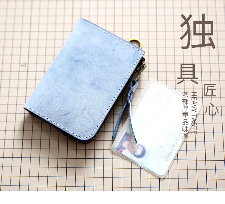 수제 미스트 왁스 야채 태닝 탑 레이어 소가죽 남성 지갑 정품 가죽 짧은 지퍼 지갑 수직 운전 면허증 지갑 유행스토어 가기
