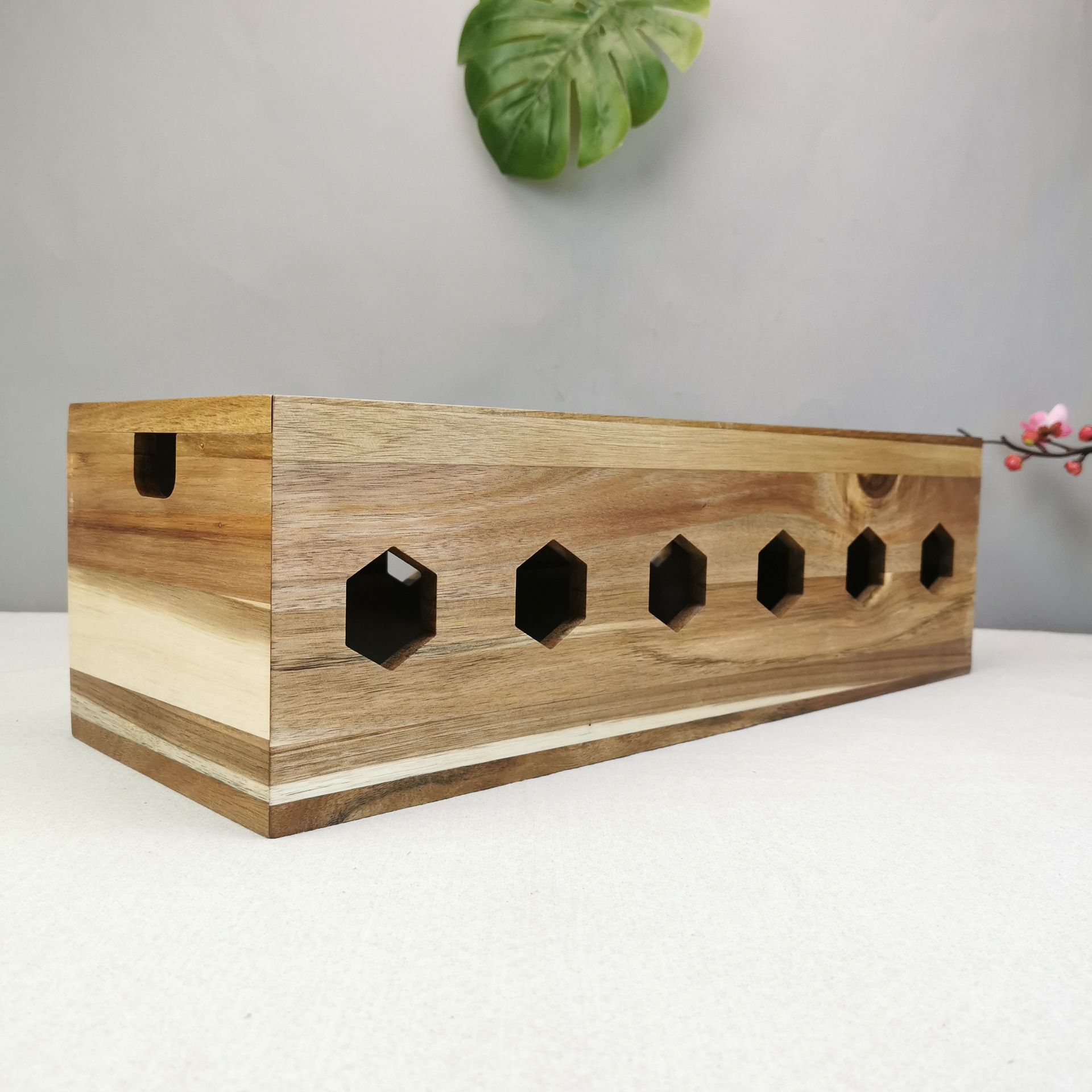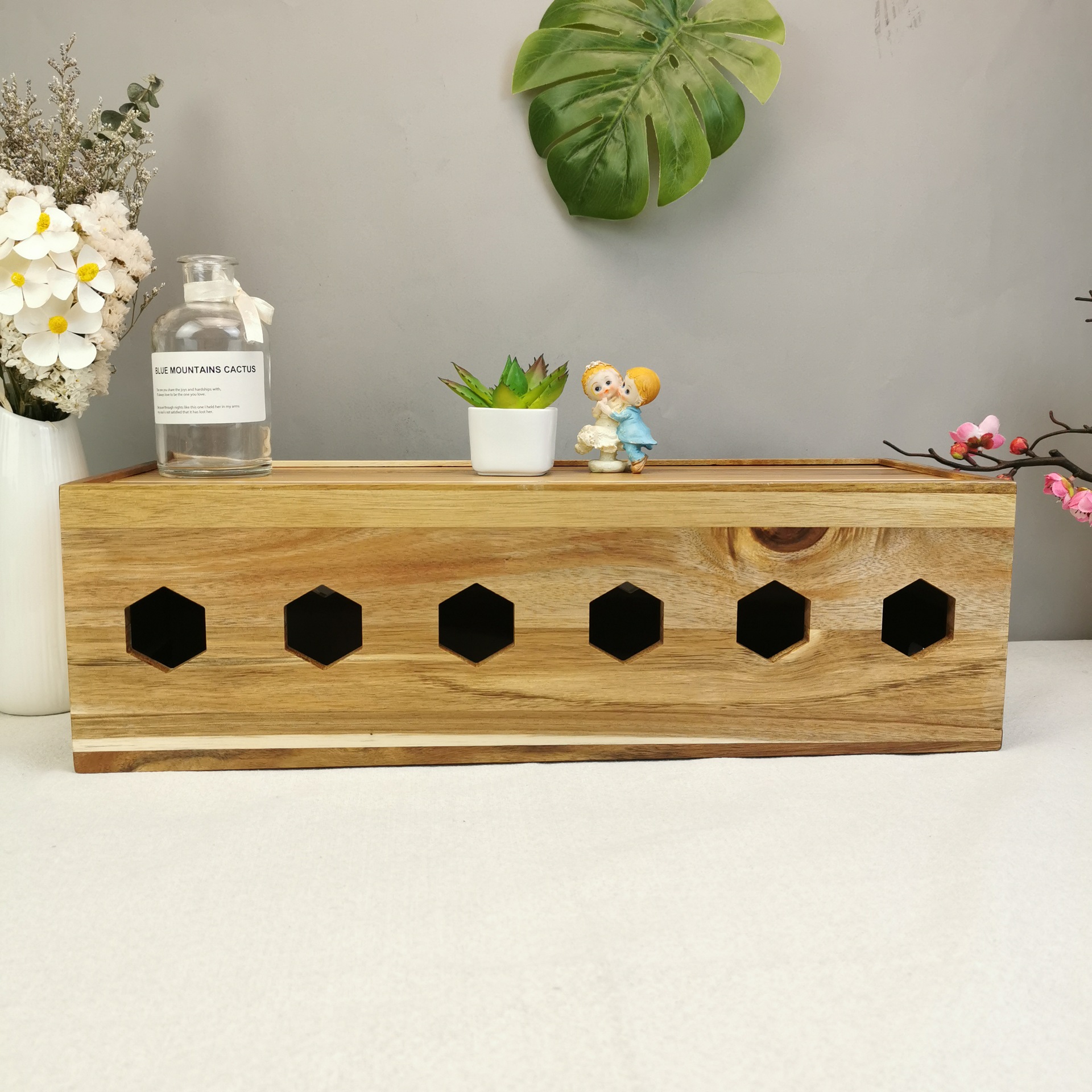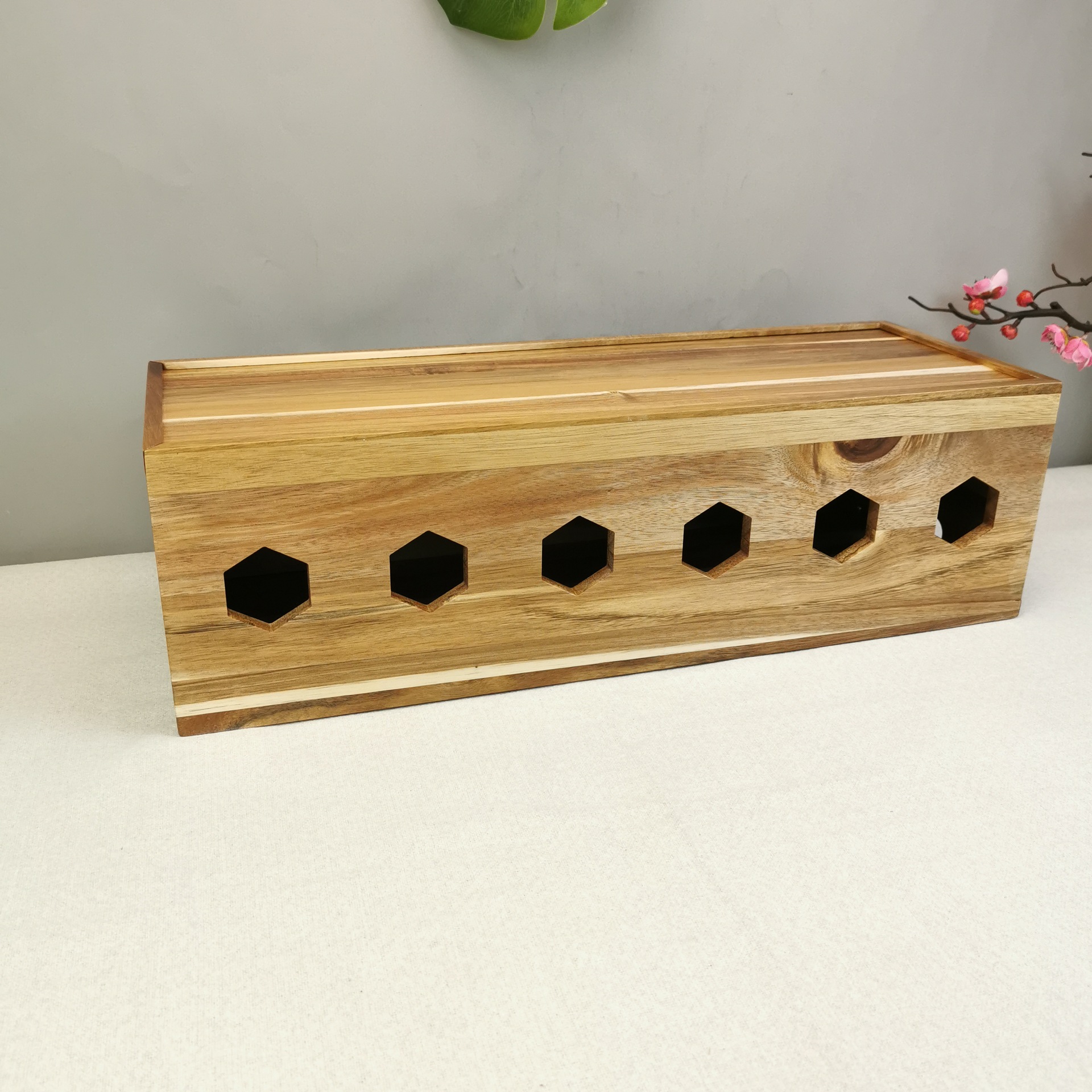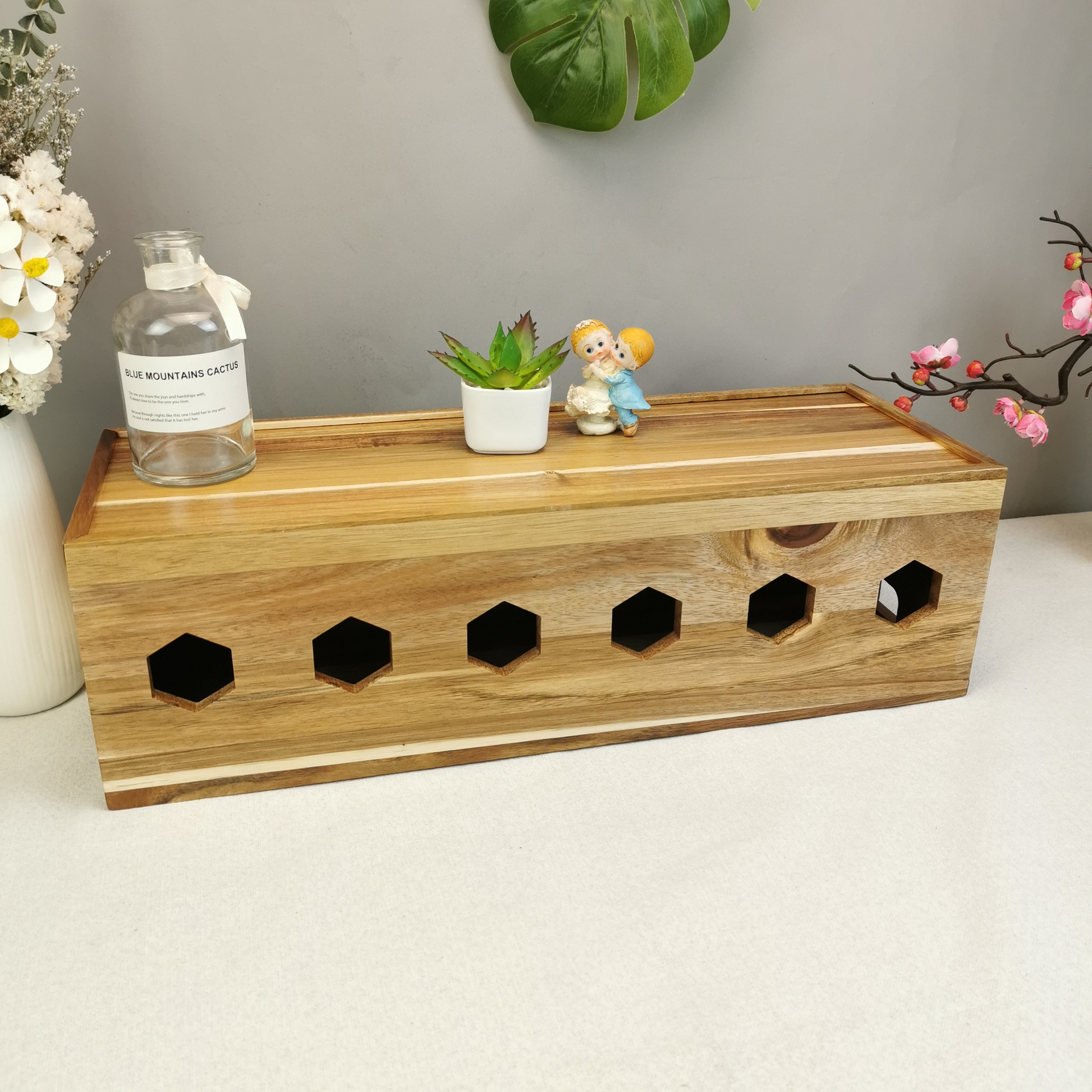 나무 전선 정리함, 아카시아 나무 데스크탑 정리함, 창의적인 속이 빈 침실 플러그인 소켓 케이블 정리함, 가정용스토어 가기