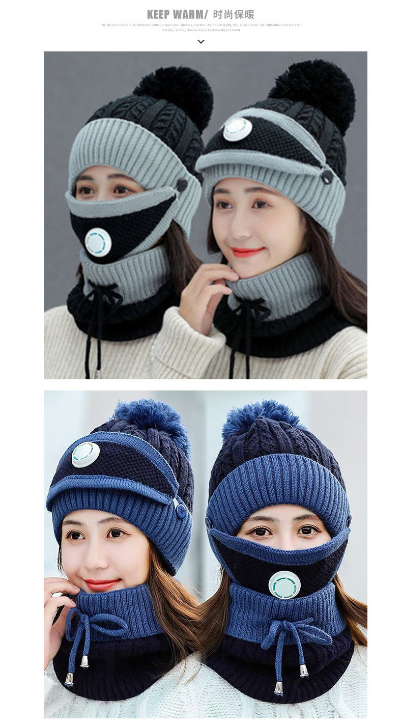 겨울 패션 승마 모자 귀 보호 양모 모자 마스크 스카프 한국 유행 니트 따뜻한 호흡 밸브 쓰리 피스 모자스토어 가기