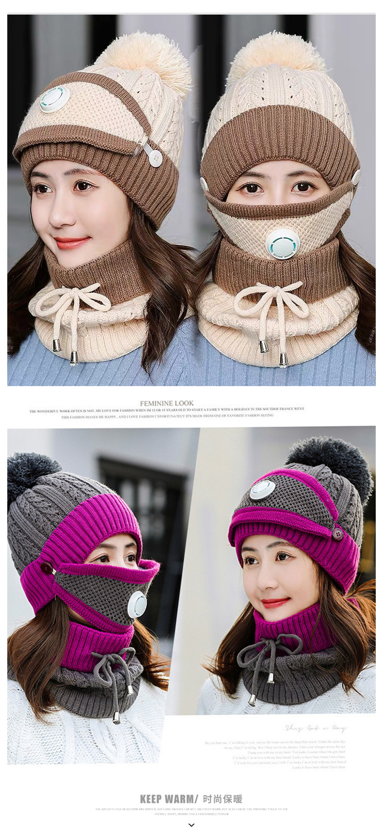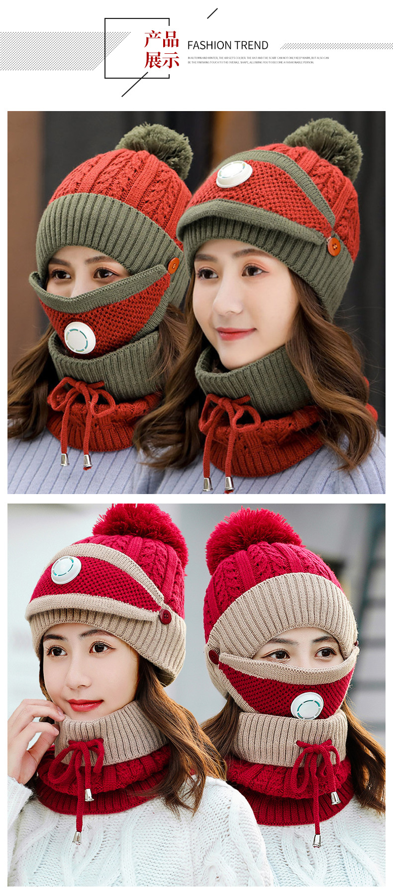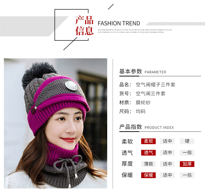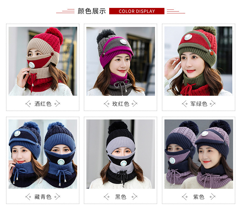 겨울 패션 승마 모자 귀 보호 양모 모자 마스크 스카프 한국 유행 니트 따뜻한 호흡 밸브 쓰리 피스 모자