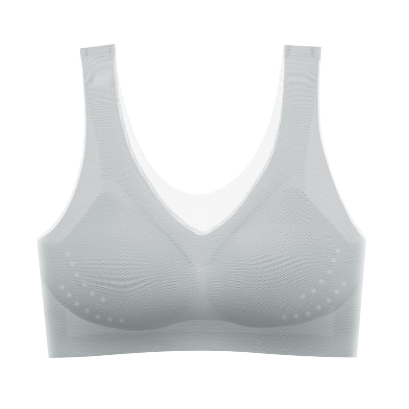 여름용 초박형 통기성 쿨링 홀컵 라텍스 속옷, 큰 가슴을 더 작아 보이게 해주는 편안한 요가 수면용 심리스 브라스토어 가기