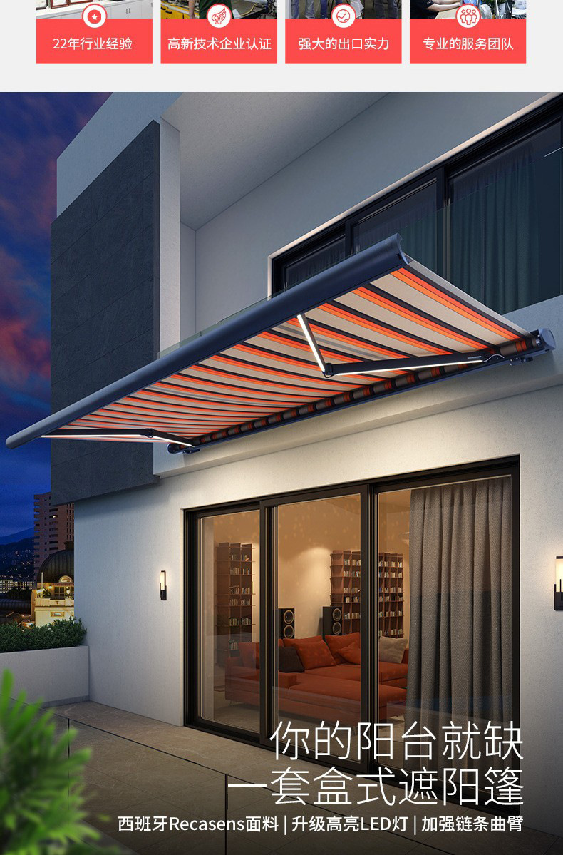 수출용 전동 풀박스형 접이식 차양막 (조명 포함 가능) 빌라 차양막 정원 접이식 차양막