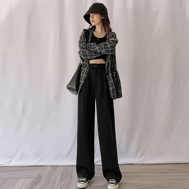 2023 봄 신상품 플러스 사이즈 와이드 레그 팬츠 여성용 느슨한 슬리밍 스트레이트 레그 팬츠 하이 웨이스트 대거 세트 롱 팬츠스토어 가기