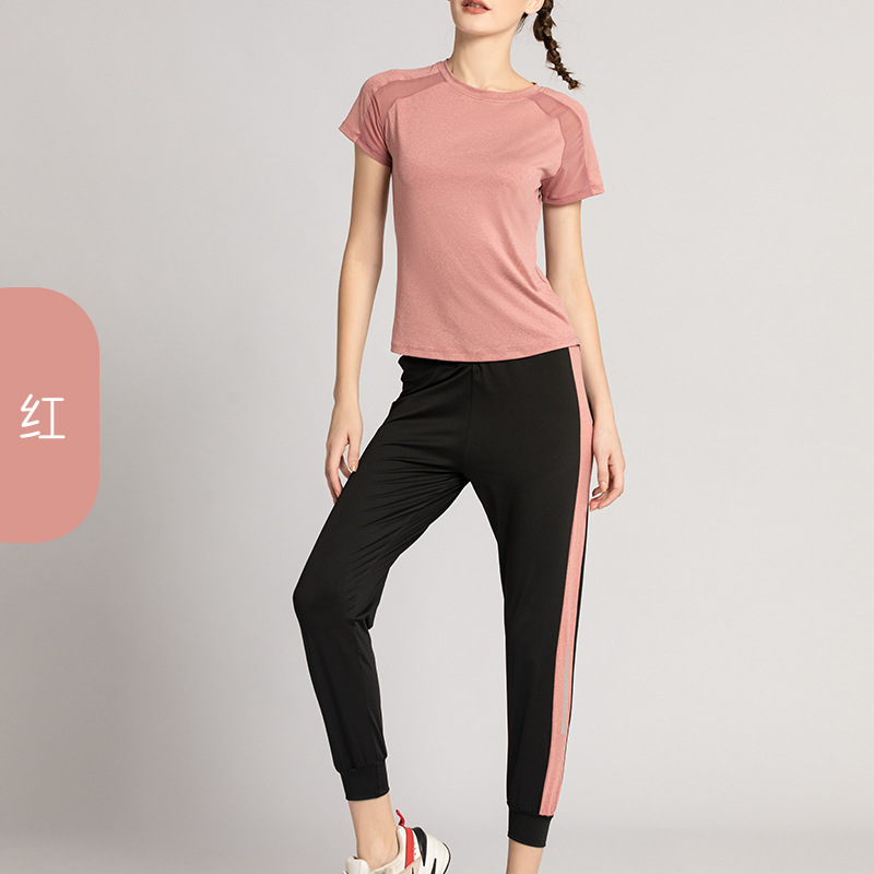 Juyitang 여름 운동복 메쉬 통기성 느슨한 누드 느낌 야외 달리기 피트니스 스포츠 정장 여성용스토어 가기