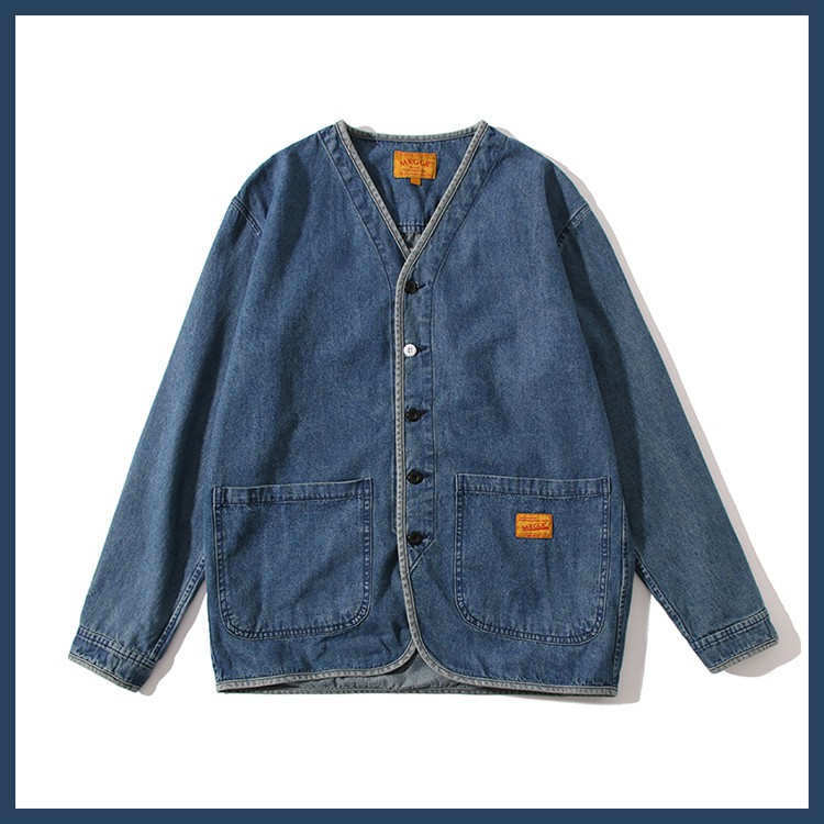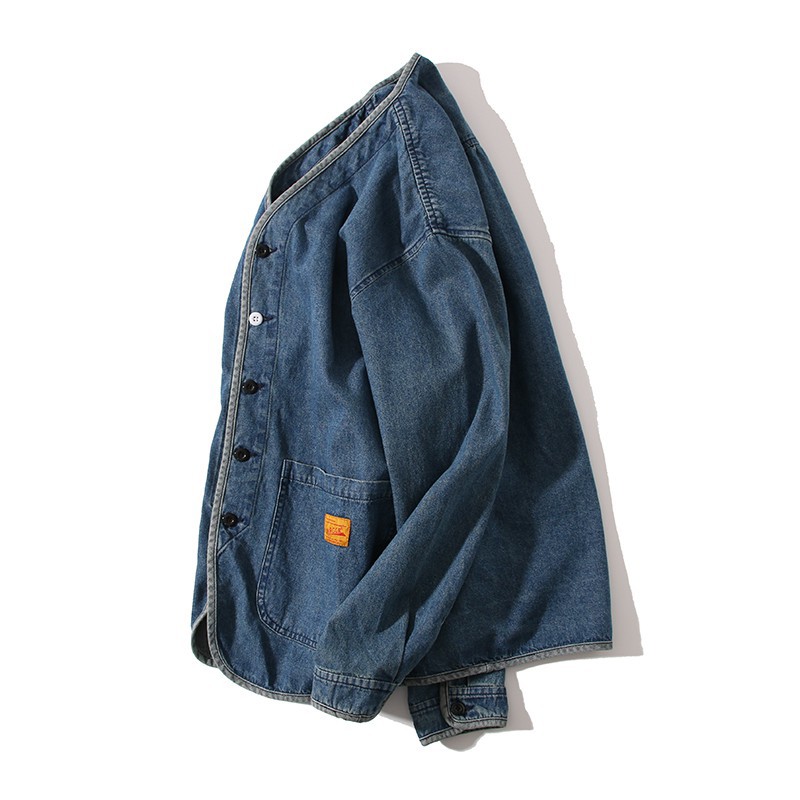 North Boundary 남성 가을 데님 재킷 남성 트렌디 브랜드 2025 신작 V 넥 루즈 루즈 캐주얼 재킷 탑스토어 가기