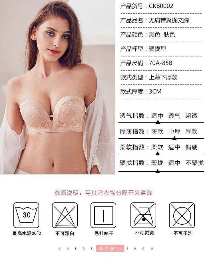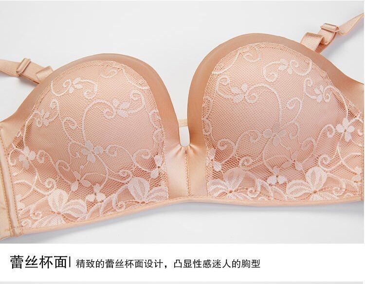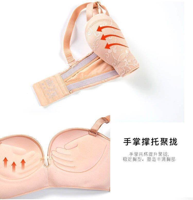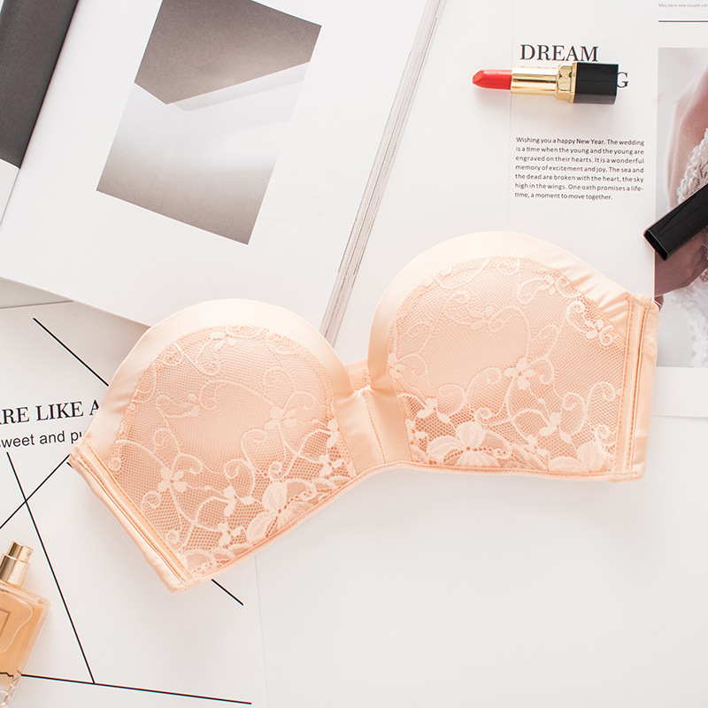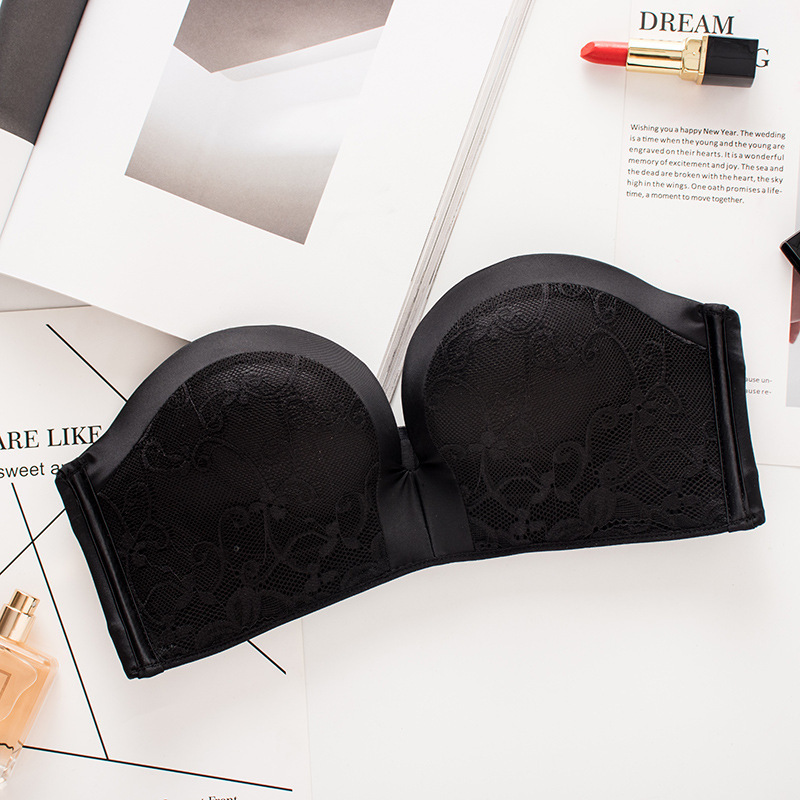 기적의 2 세대 섹시한 레이스 끈이없는 속옷 여성용 미끄럼 방지 작은 가슴 두꺼운 푸시 업 보이지 않는 오프 숄더 빨간 브래지어스토어 가기