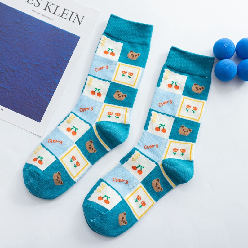 일본식 만화 여성용 면 양말 미드 튜브 재미 크리에이티브 양말 전체 귀여운 곰 하이 탑 유행 양말 스포츠 양말 면스토어 가기