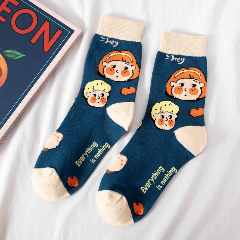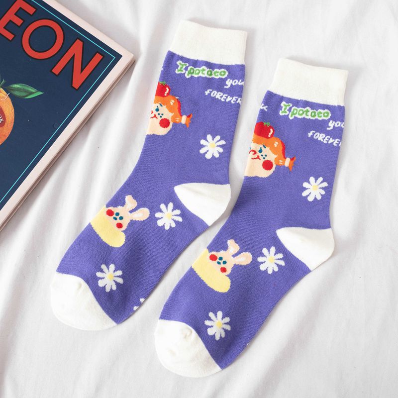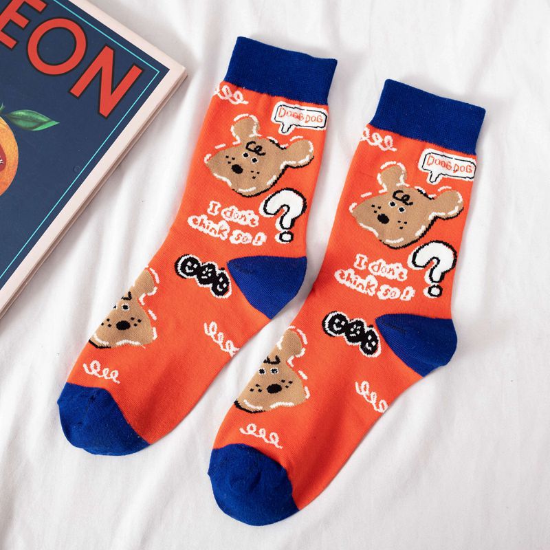 봄 신제품 양말 캔디 컬러 귀여운 동물 유럽과 미국 전체 패션 양말 만화 스택 중간 튜브 여성 양말 면스토어 가기