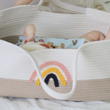 ins新款纯棉手提婴儿篮 手提篮轻便携式婴儿外出睡篮 创意婴儿床