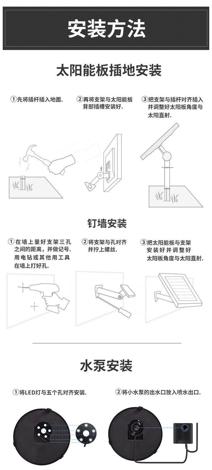• 5W 분수 분할 [배터리 포함] + 태양열 분수