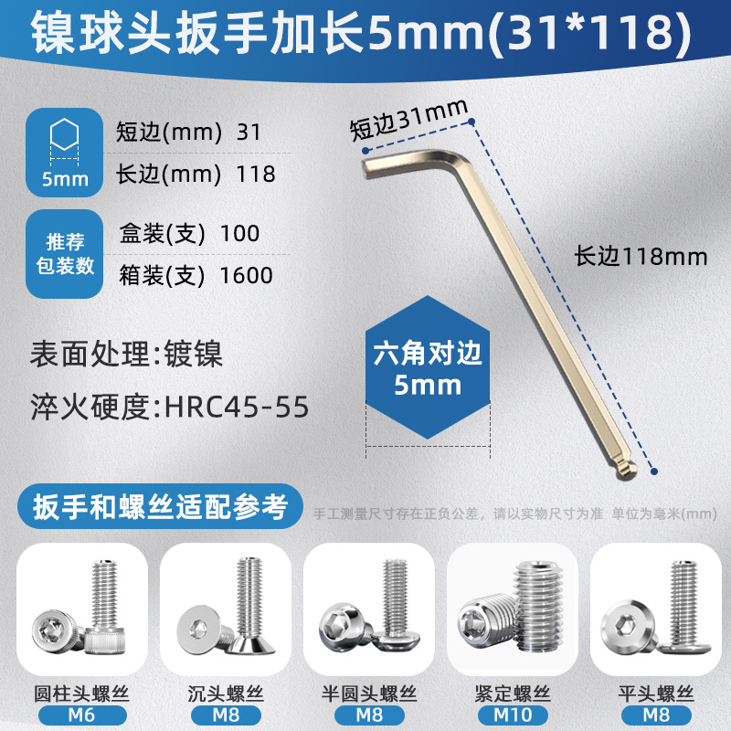 • 5mm 길이의 니켈 볼 렌치 (31*118)