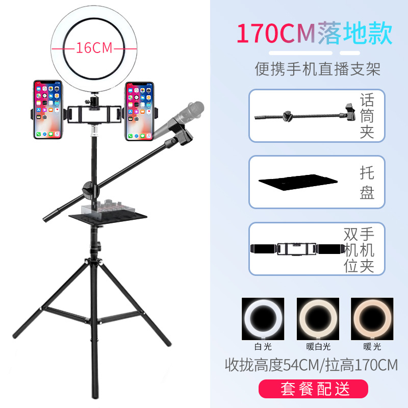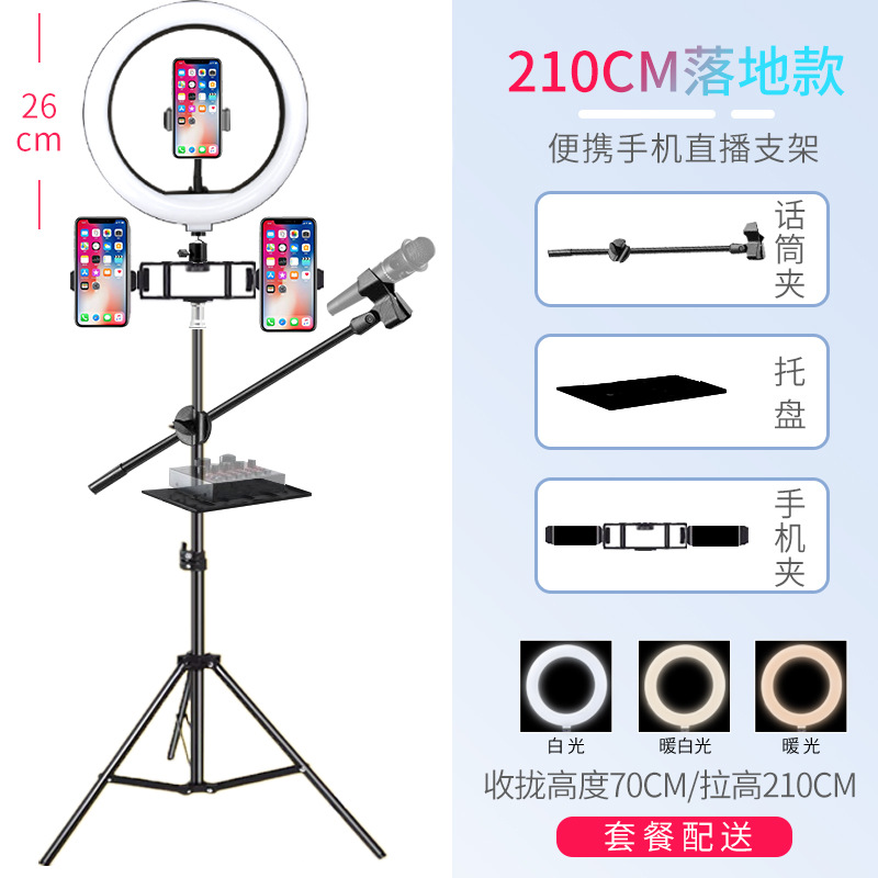 휴대 전화 라이브 자화상 삼각대 라이트 필링 트레몰로 촬영 노래 장비 멀티 포지션 네트 레드 플로어 텔레스코픽