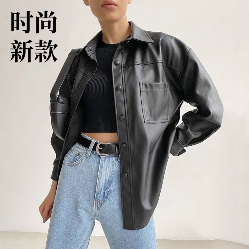 새로운 가죽 윈드 브레이커 유럽과 미국 스타일 가죽 바이커 재킷 여성 가을 코트 블랙 작은 가죽 코트 옷깃 코트 여성스토어 가기