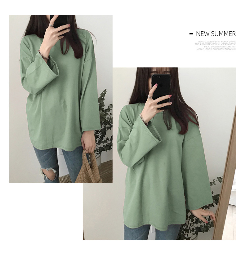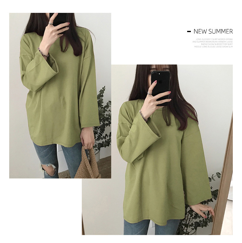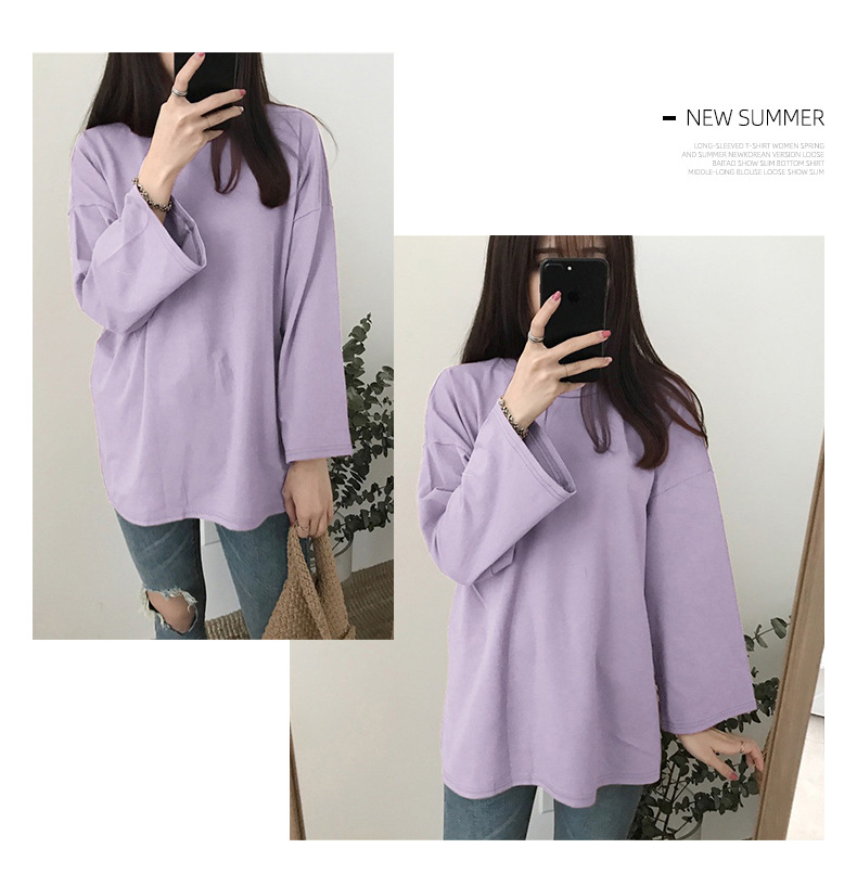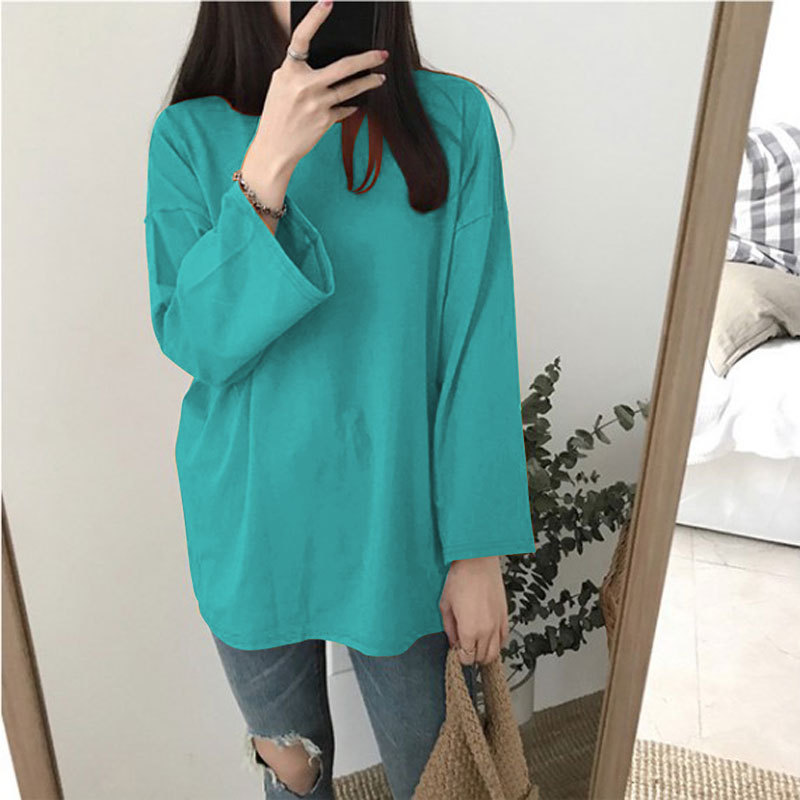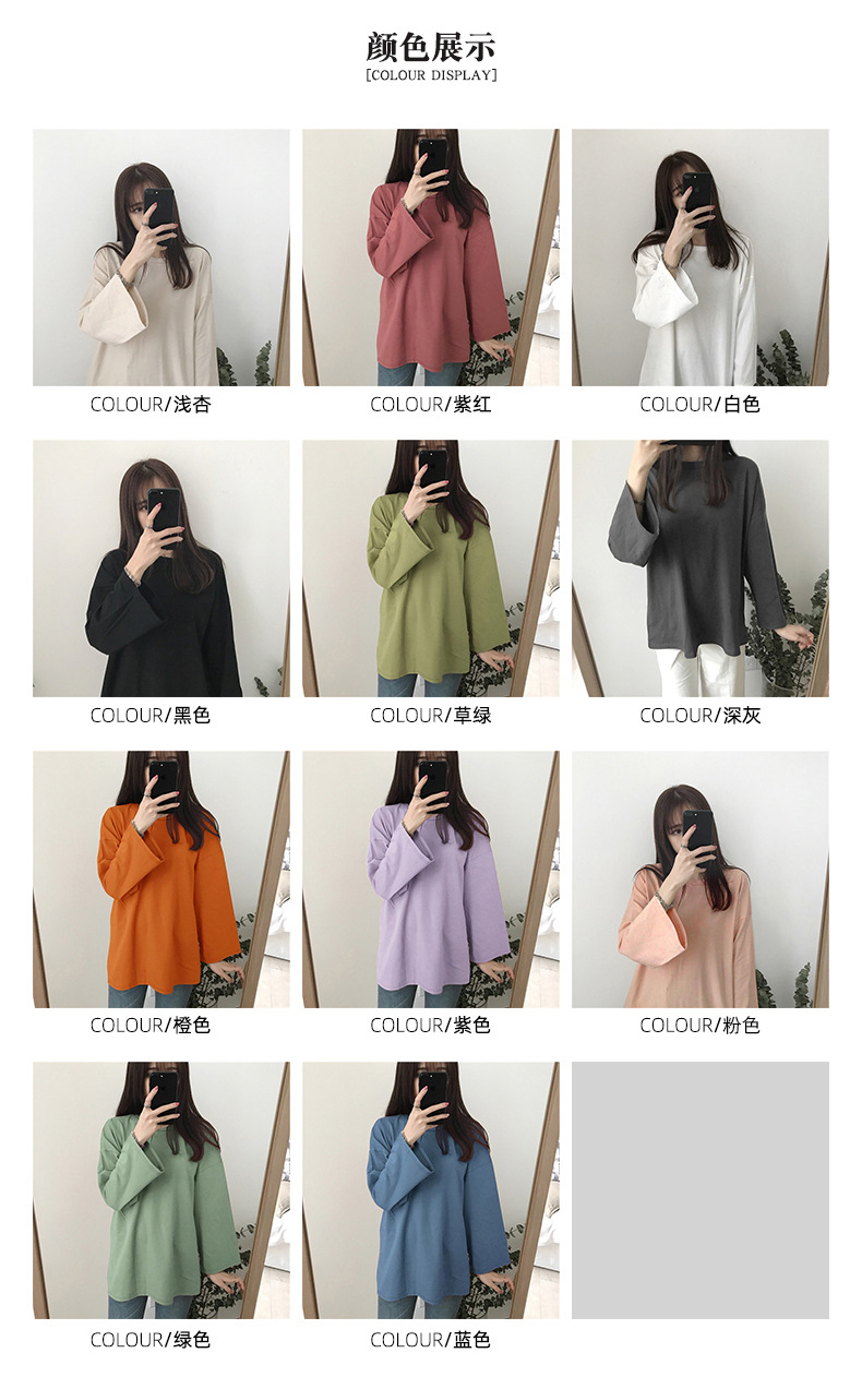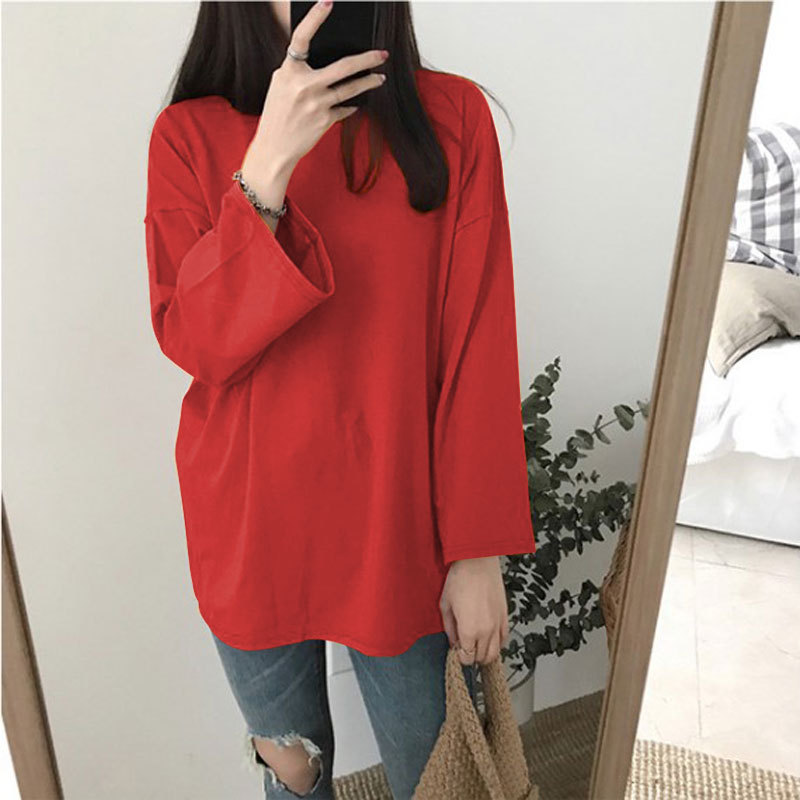 [15 색 롱 t] 베이직 긴팔 티셔츠 여자 봄 가을 한국 느슨한 학생 단색 만능 옷스토어 가기