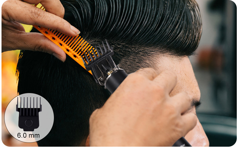 基本配置:推剪、磁吸限位梳(1.5/3/4.5/6MM)、保护盖、润滑油、清洁刷、USB充电线、说明书(英文)