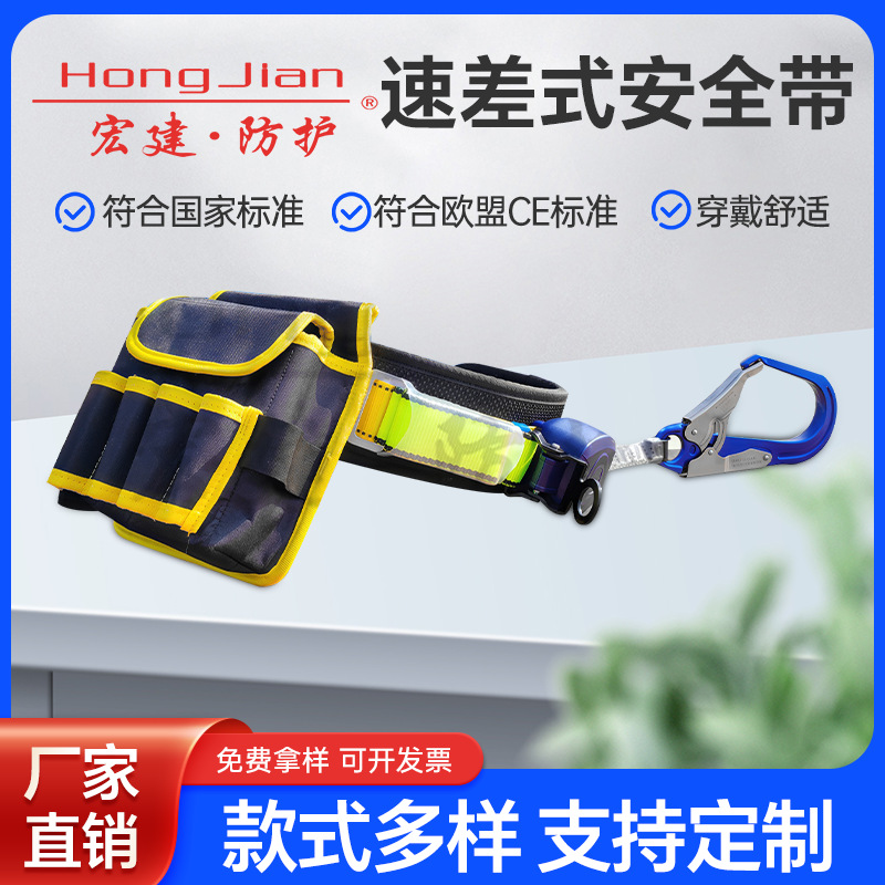 홍지아 속도 차동 안전 벨트 텔레스코픽 발판 에어컨 설치 폴리 에스테르 벨트 전기 단일 허리 대형 후크 안전 벨트스토어 가기