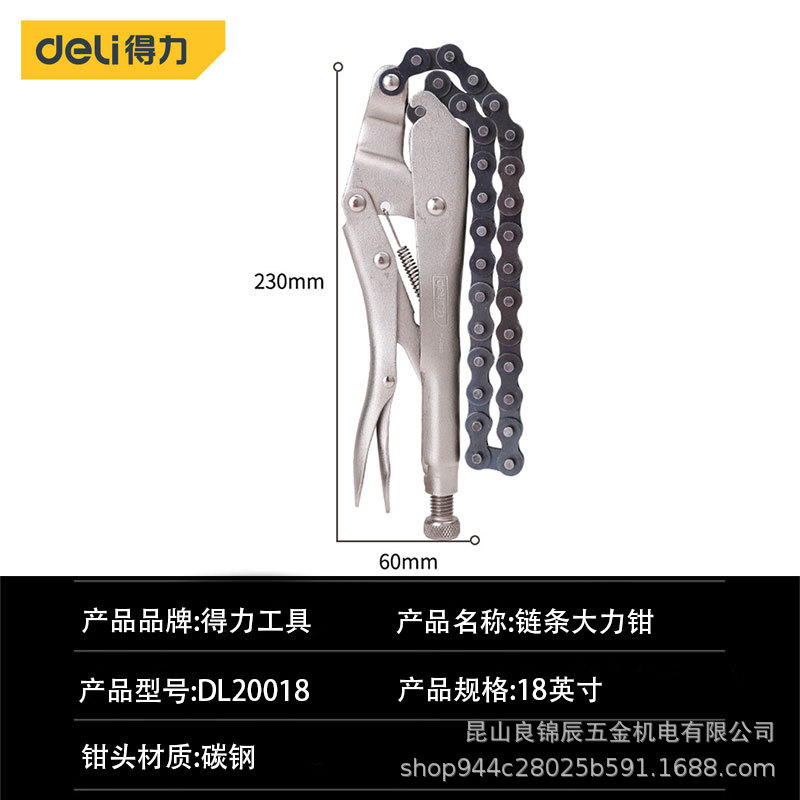 델리 툴 18 인치 체인 타입 잠금 플라이어 다기능 파이프 고정 클램핑 체인 플라이어 DL20018스토어 가기