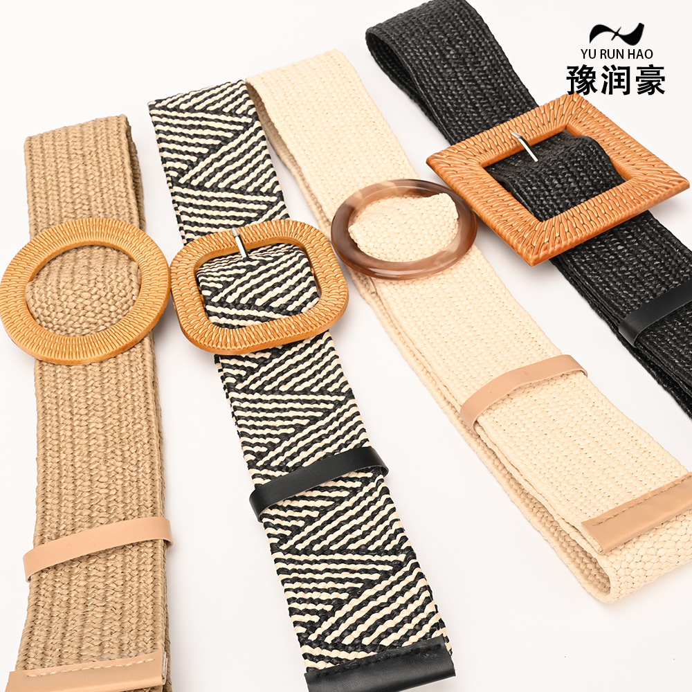 남성과 여성을 위한 새로운 PP 밀짚 벨트, 여성용 라운드 버클, 패셔너블하고 캐주얼한 장식, 다용도 바지 신축성 있는 벨트스토어 가기