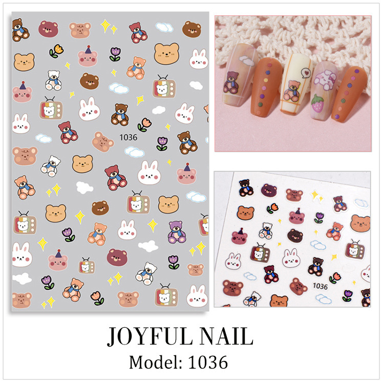 네일 스티커 여름 다채로운 태양 꽃 웃는 만화 작은 곰 토끼 그물 빨간 폭발 장식 네일 스티커스토어 가기