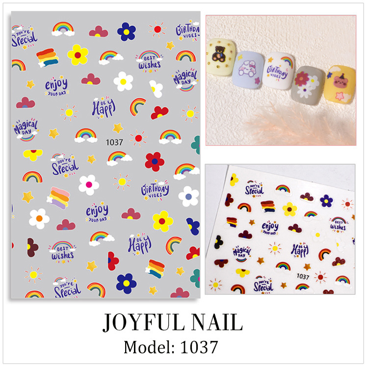 네일 스티커 여름 다채로운 태양 꽃 웃는 만화 작은 곰 토끼 그물 빨간 폭발 장식 네일 스티커