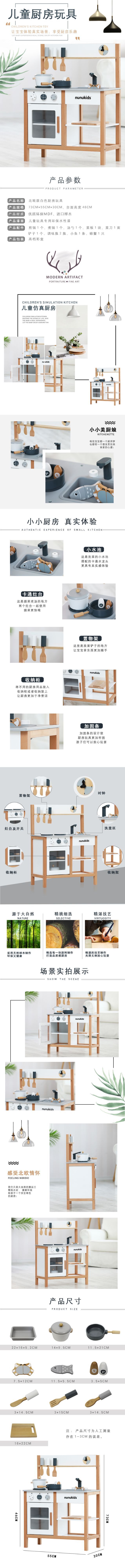 nunukids出口北欧,北欧风厨房过家家玩具。产品尺寸:55*30*73cm。操作台面高46cm。选用进口东欧榉木精心制造。精美礼盒包装!送人自用同类产品的首选。