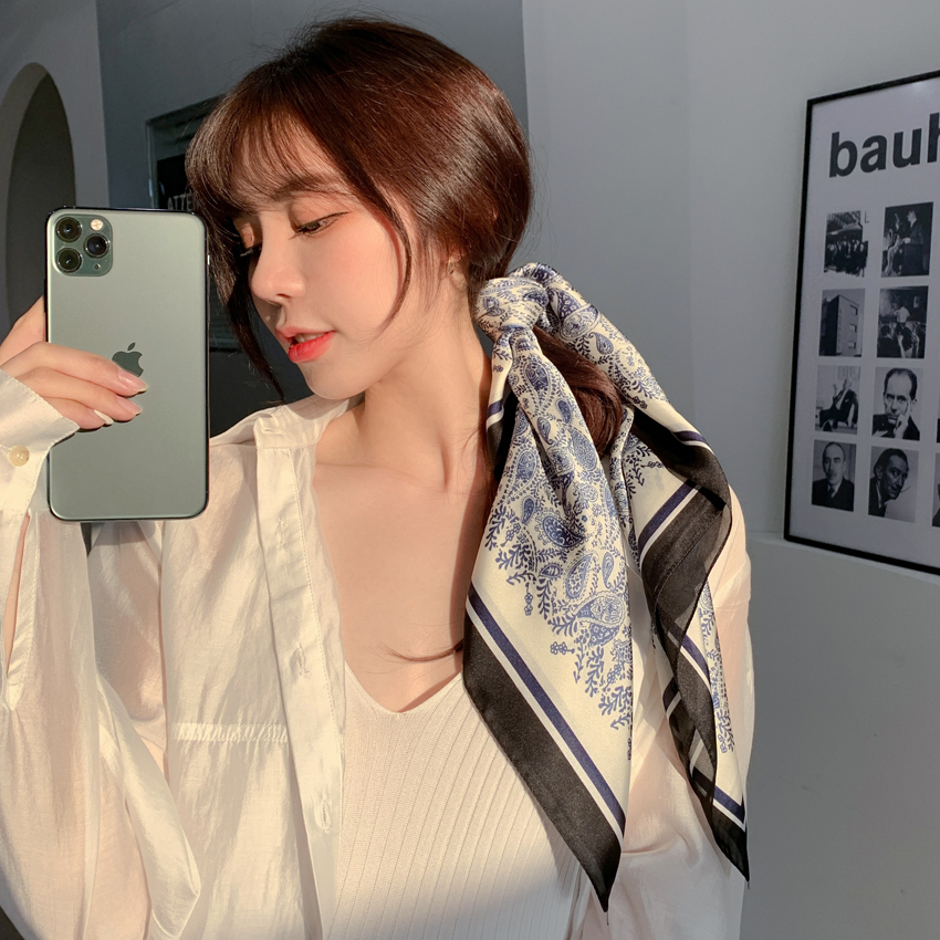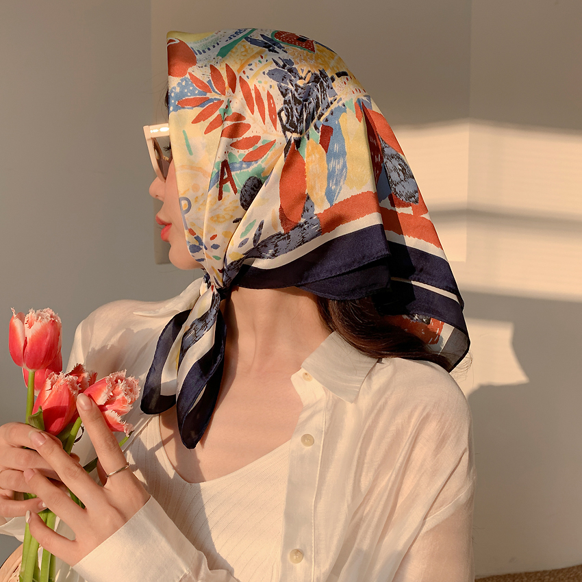 빈티지 프랑스 실크 스카프 머리띠 여자의 넥타이 머리 머리띠 머리띠 유행 인터넷 인기 2023 새로운 대형 사각 스카프 도매