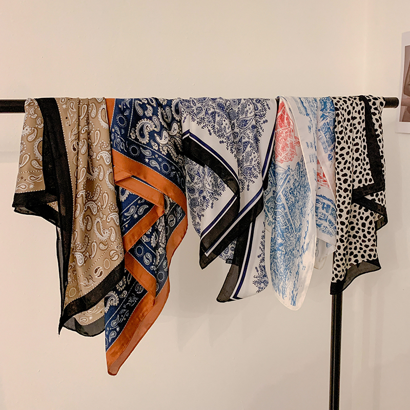빈티지 프랑스 실크 스카프 머리띠 여자의 넥타이 머리 머리띠 머리띠 유행 인터넷 인기 2023 새로운 대형 사각 스카프 도매스토어 가기