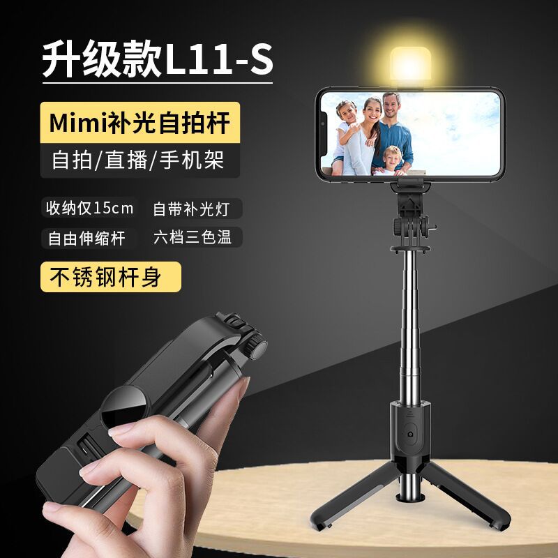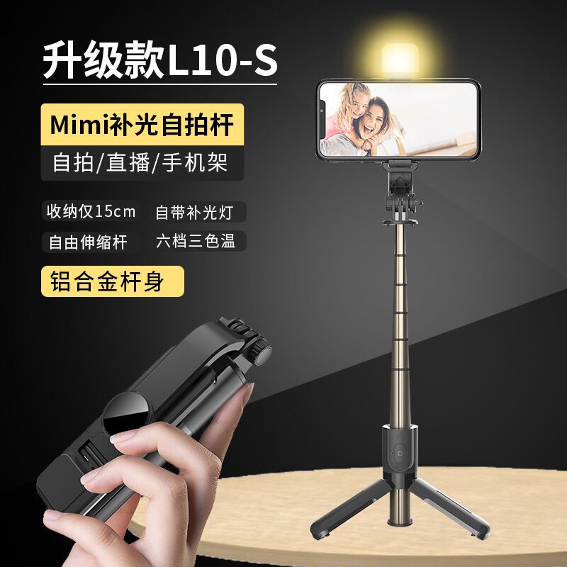 L10S 미니 라이브 휴대 전화 브래킷 블루투스 리모콘 셀카 스틱 알루미늄 합금 다기능 필 라이트 카메라 아티팩트스토어 가기