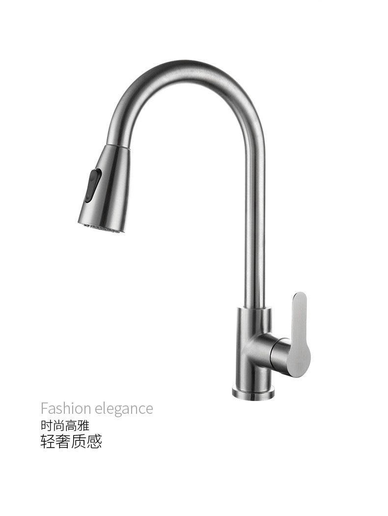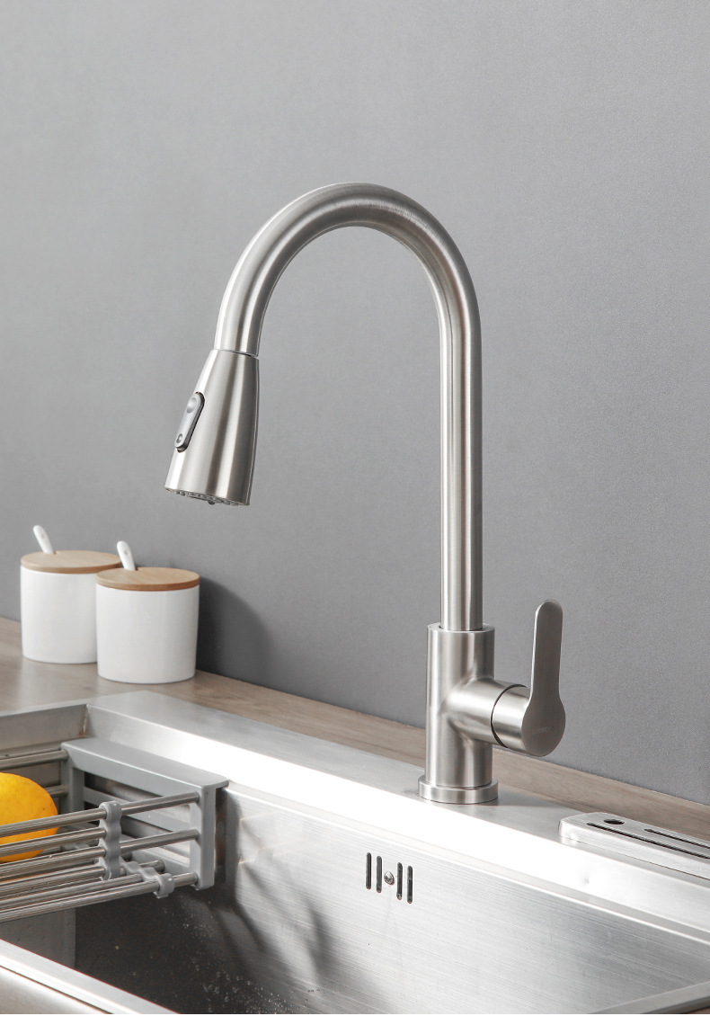 당겨 수도꼭지 주방 뜨겁고 차가운 스테인레스 스틸 접시 분지 싱크대 이중 물 텔레스코픽 회전식 수도꼭지 도매스토어 가기