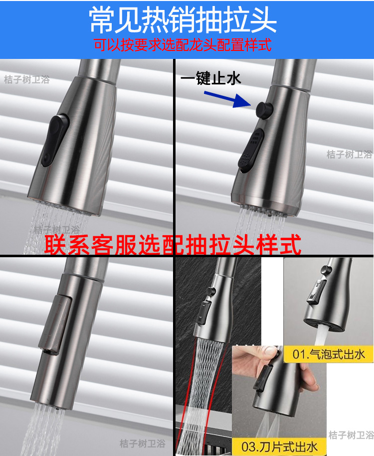 • 304 브러시드 풀아웃 대형 곡선 원클릭 지수 노즐