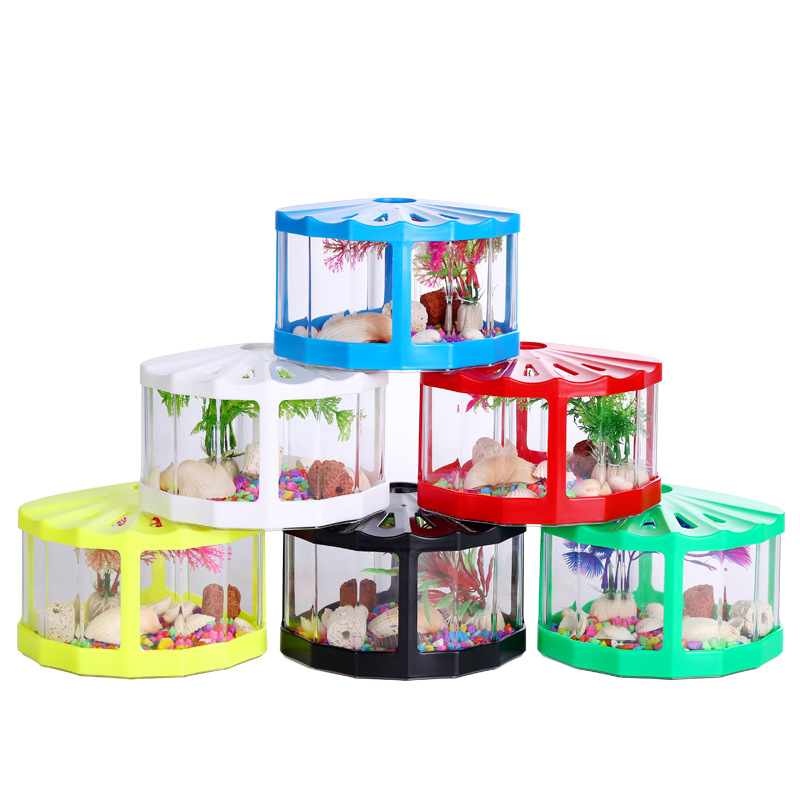 빌딩 블록 양동이 물고기 작은 어항 마이크로 생태 장식 어항 플라스틱 어항 파충류 상자 창조적 인 거북이 탱크스토어 가기