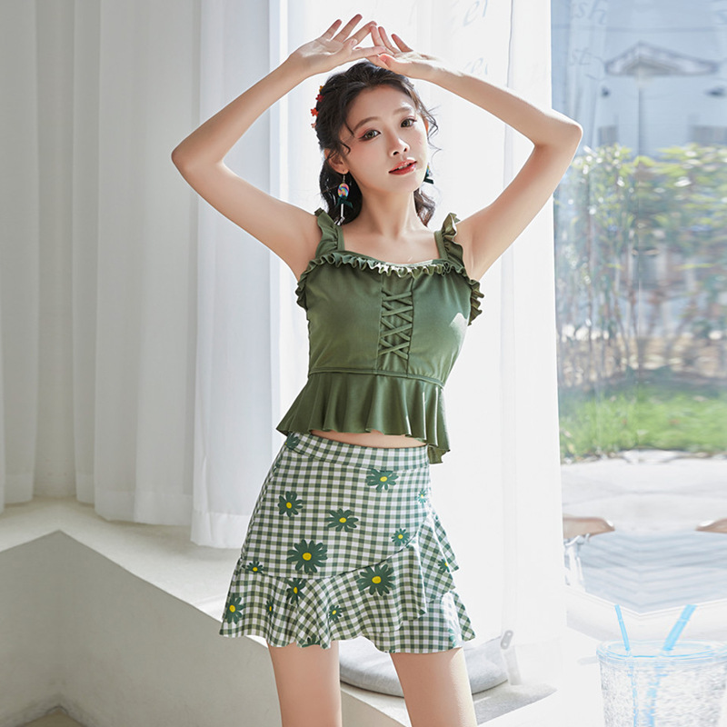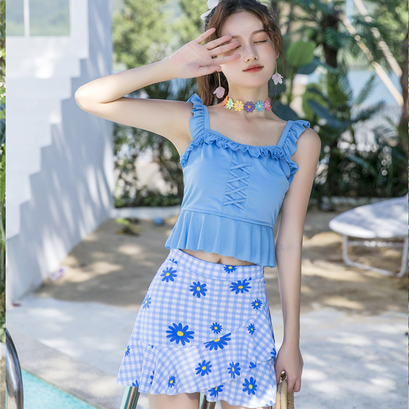 2024 새로운 인터넷 기념 폭발 분할 스커트 투피스 수영복 여성 대학 스타일 보수적 인 학생 슬리밍 수영복스토어 가기