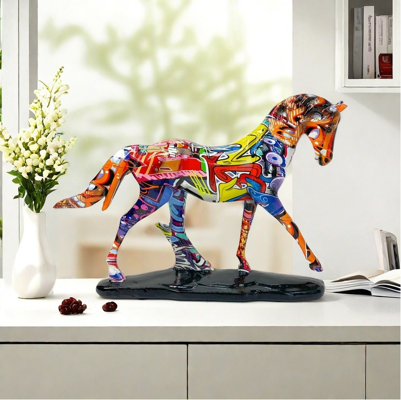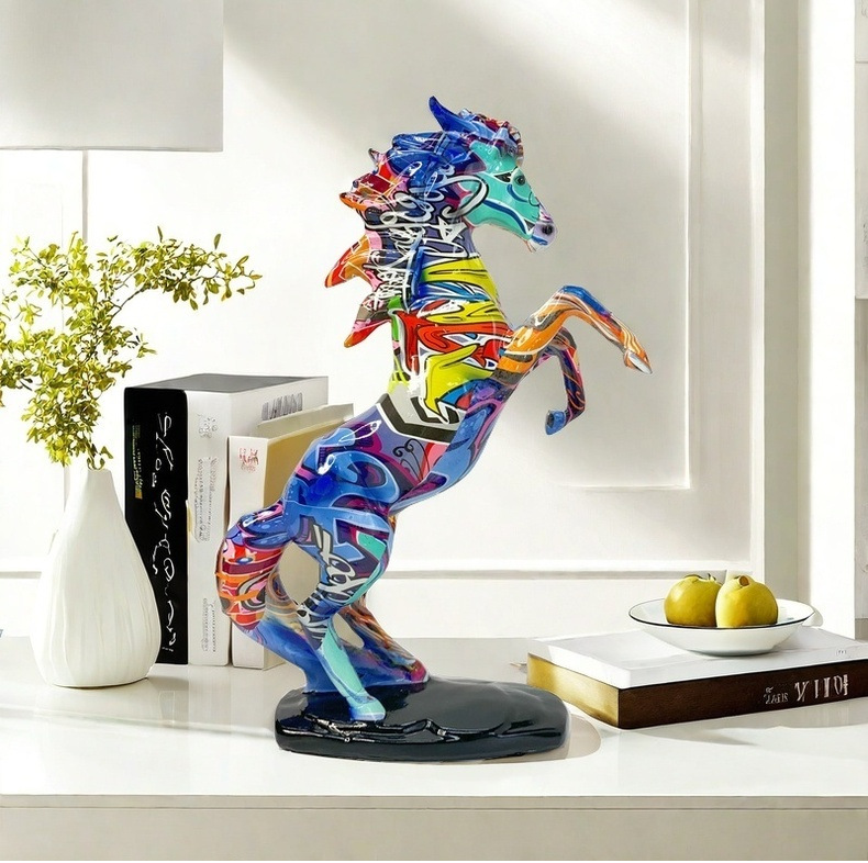 유럽 스타일의 컬러 낙서 물 전송 성공 수지 공예 장식 거실 입구 와인 캐비닛 장식 용품에 말을 인쇄