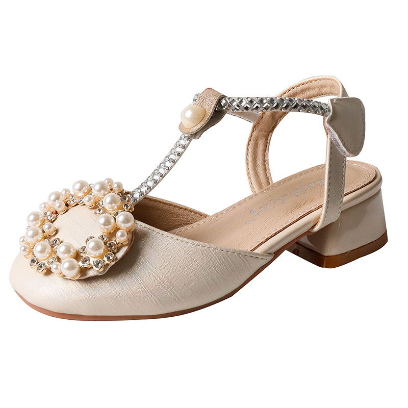 새로운 어린이 발가락 샌들 여아 진주 부드러운 밑창 두꺼운 굽 어린이 신발 한국 패션 무대 공연 작은 공주 신발스토어 가기