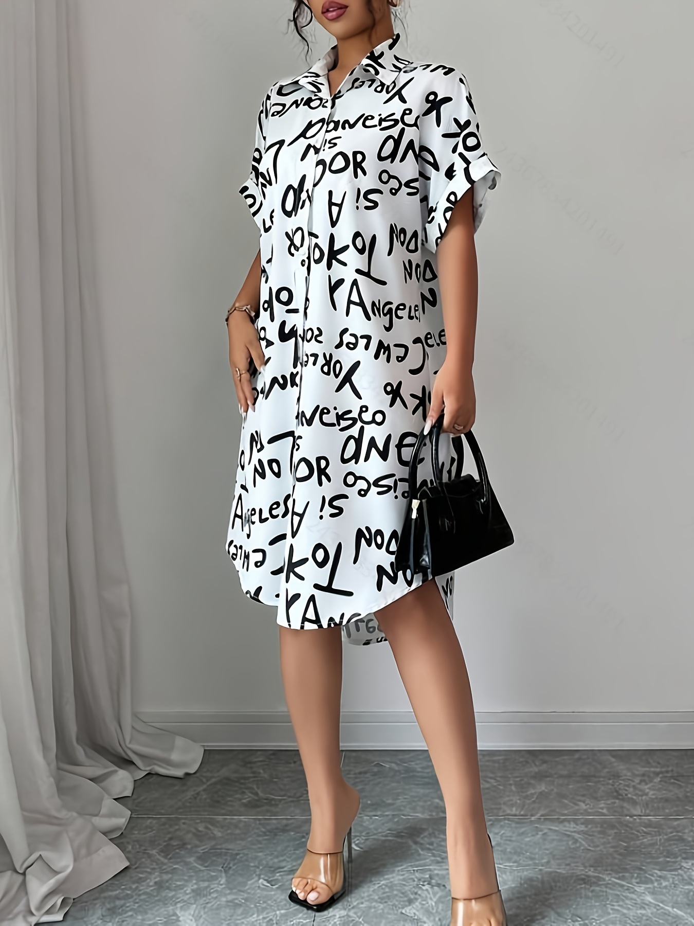 2021 가을 새로운 유럽과 미국 대외 무역 여자의 아마존 OL 기질 인쇄 카디건 옷깃 느슨한 셔츠 원피스스토어 가기