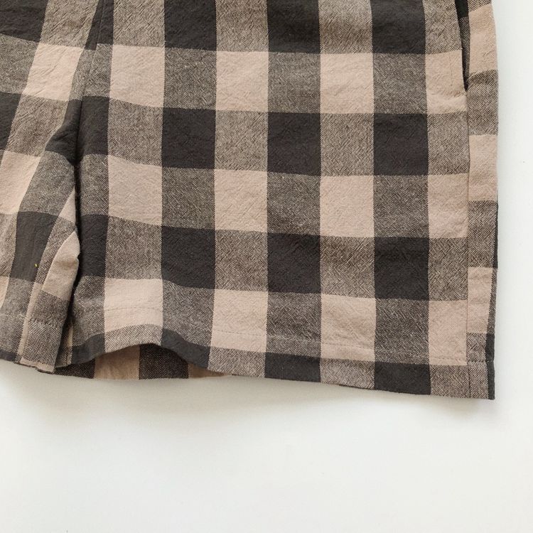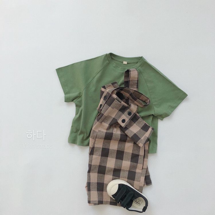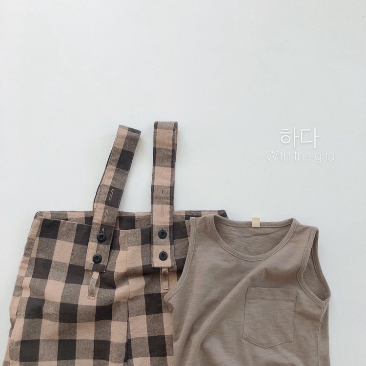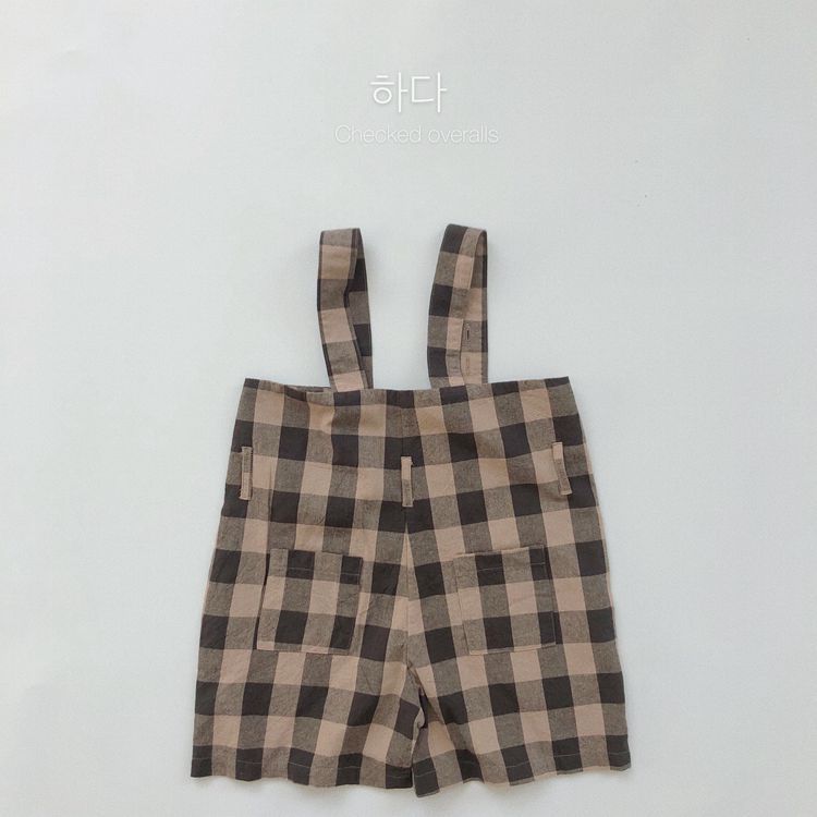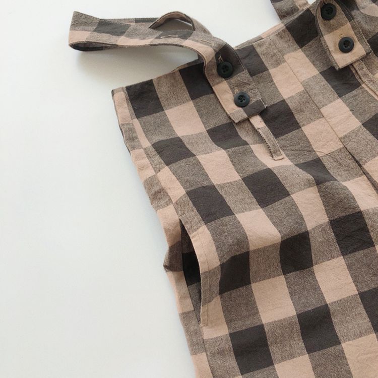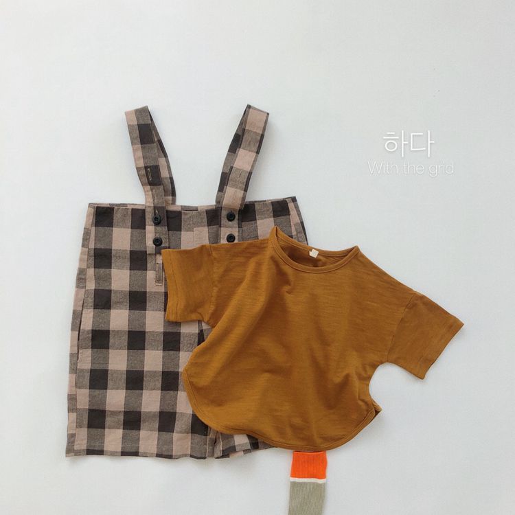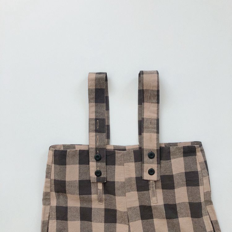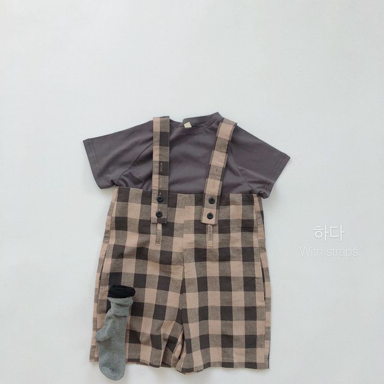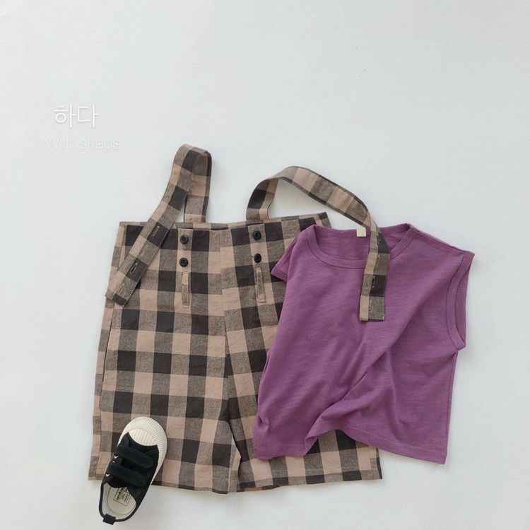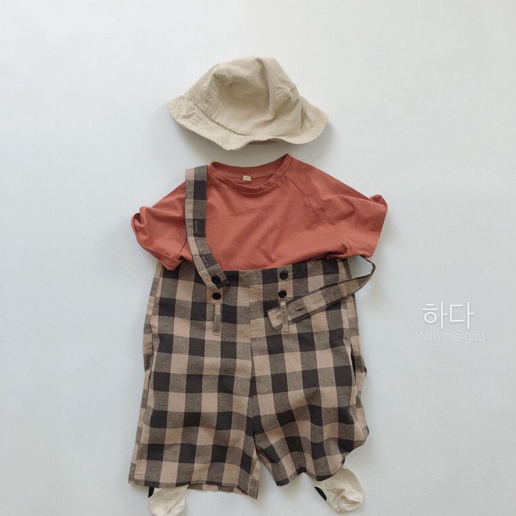 한국 스타일 어린이 멜빵 바지 여름 얇은 멜빵 바지 소년 소녀 면 및 린넨 격자 무늬 원피스 바지 레트로 웨스턴 스타일스토어 가기