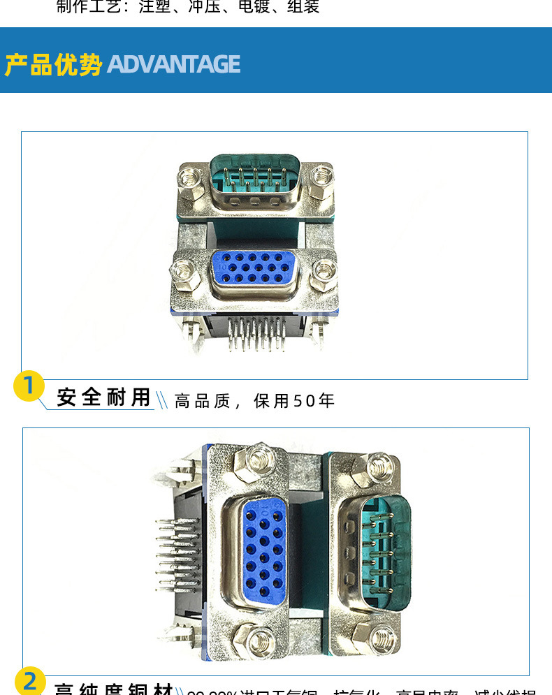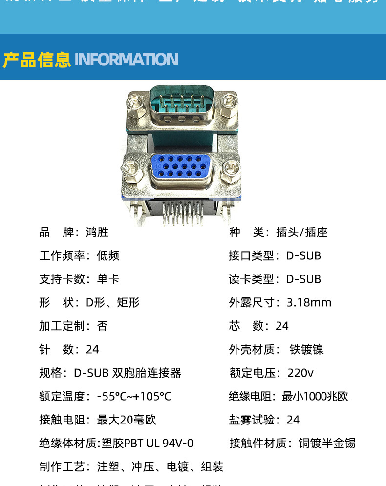 DB DR D-SUB 이중층 커넥터 상단 9핀 하단 15핀 5.08mm 간격 19.05mm 리벳 잠금 나사스토어 가기