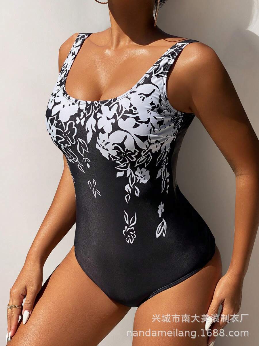 유럽 및 미국 스타일의 대형 사이즈 원피스 수영복 2025년 재고 프린트 여성 비키니 수영복스토어 가기