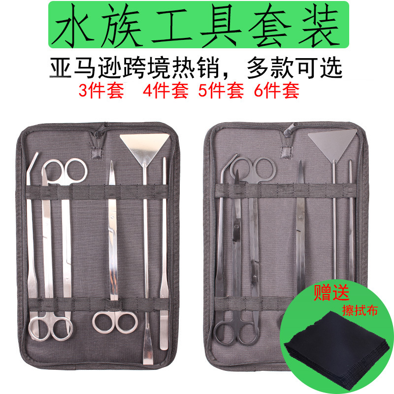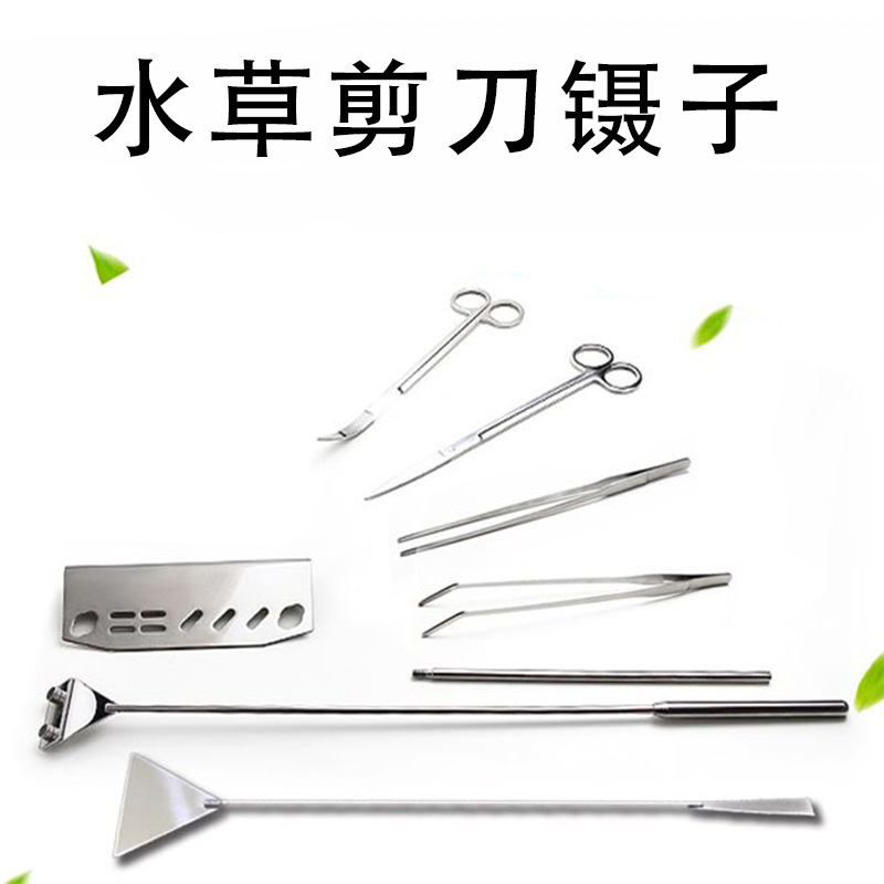 • tweezers不锈钢镊子剪刀 加长直弯头镊刮藻刀平沙铲水族工具套装