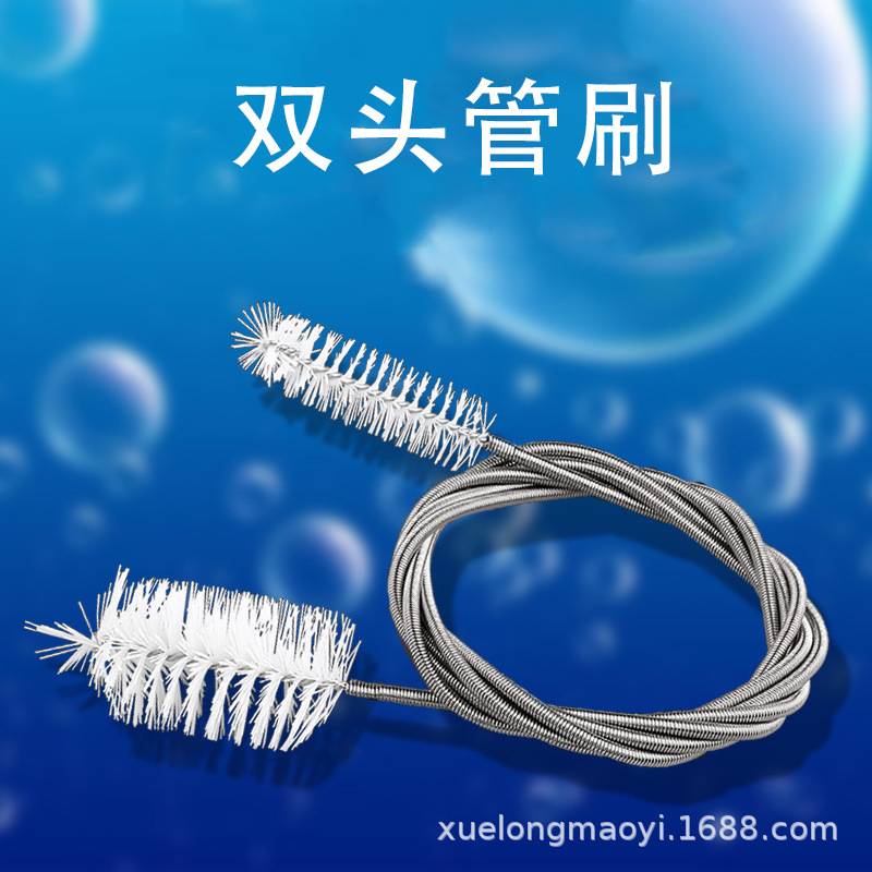 • 厂家批发鱼缸清洁工具过滤桶水管双头毛刷90CM不锈钢弹簧清洁管刷