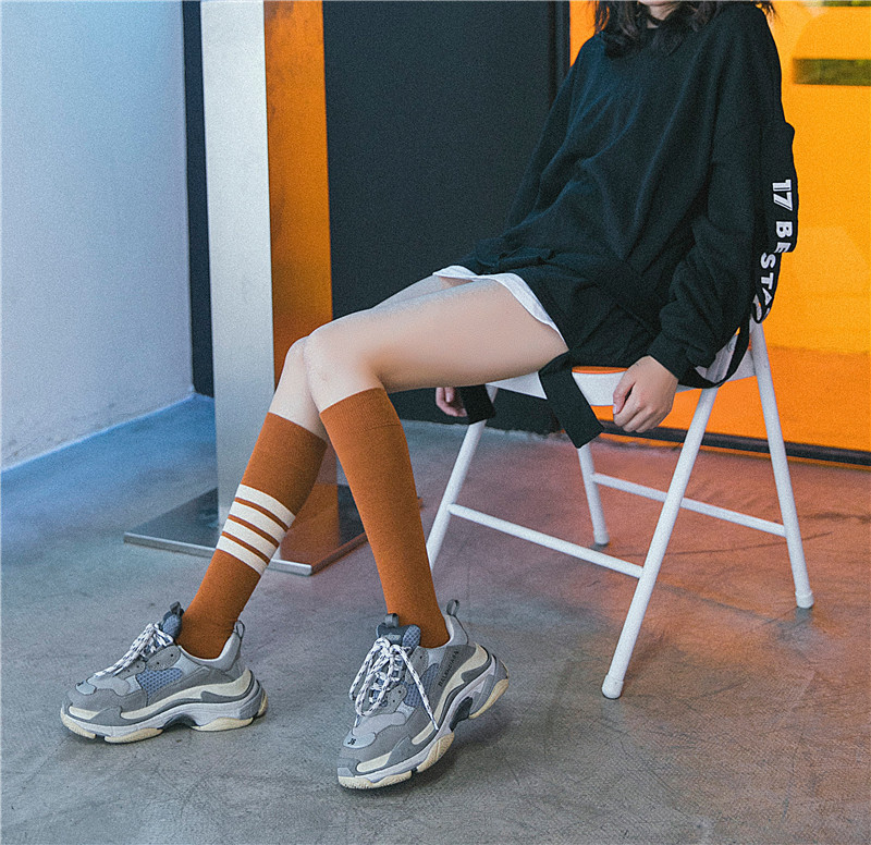 비대칭 종아리 양말 JK 여자 스타킹 왼쪽과 오른쪽 비대칭 줄무늬 스타킹 로리타 스타일 학생 양말스토어 가기