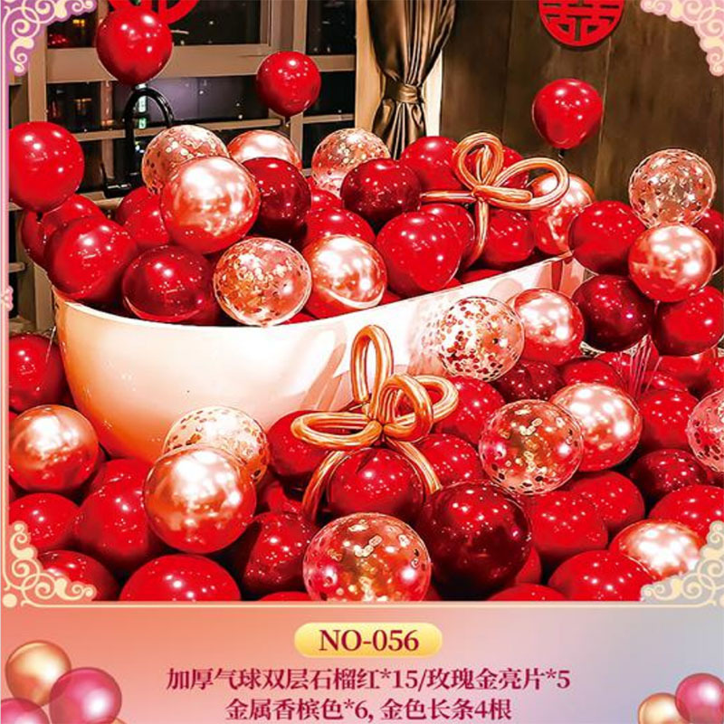 인터넷 레드 풍선 라텍스 메탈 스편 해피 캐릭터 더블 석류 레드 스트립 생일 파티 웨딩 장식
