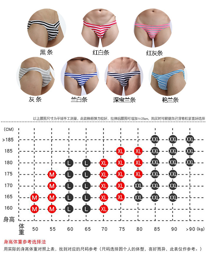 공장 직영 일본 및 한국 청년 유럽 및 미국 남성용 로우 웨이스트 팬티 섹시하고 패셔너블한 스트라이프 삼각 팬티 도매 남성용 C-010스토어 가기