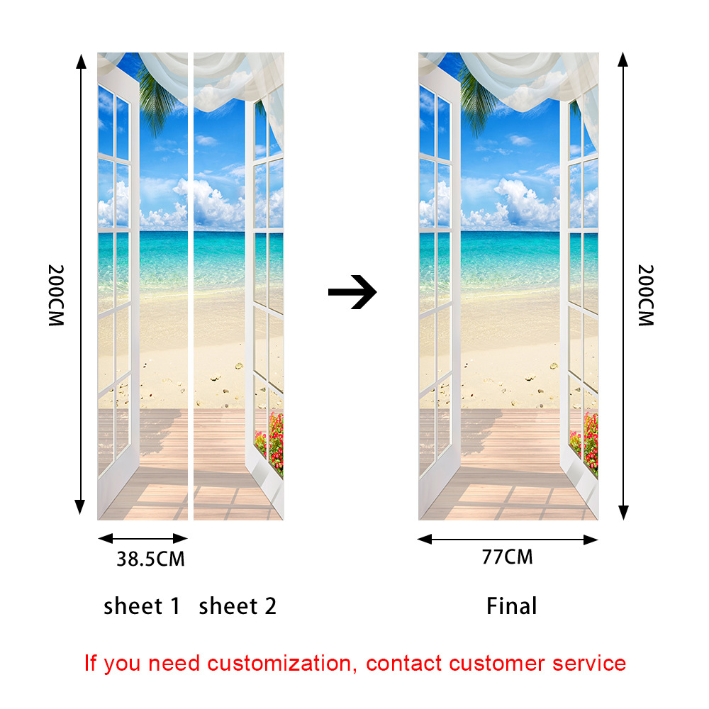 바다 해변 문 스티커 자체 접착 이동식 벽 스티커 홈 리노베이션 장식을위한 국경 간 아마존스토어 가기