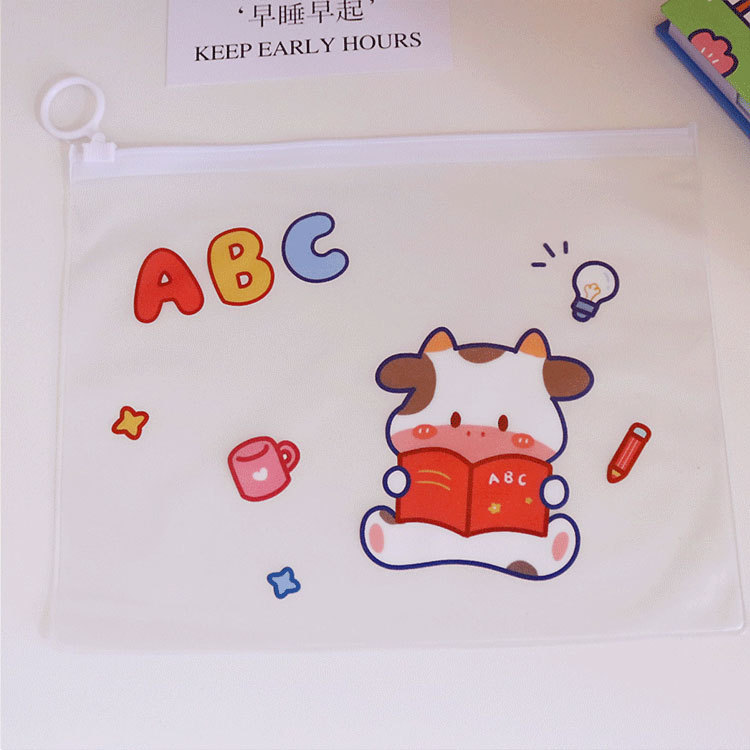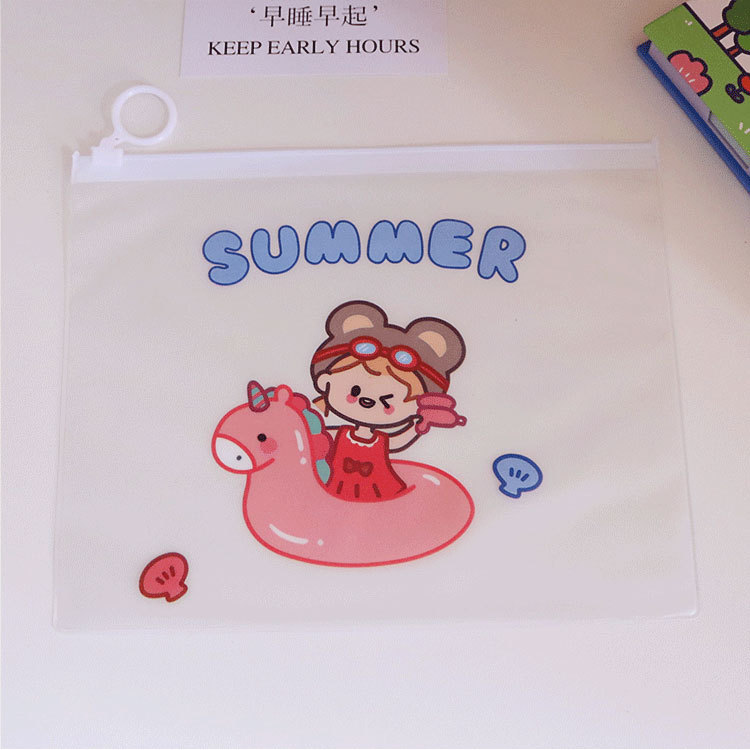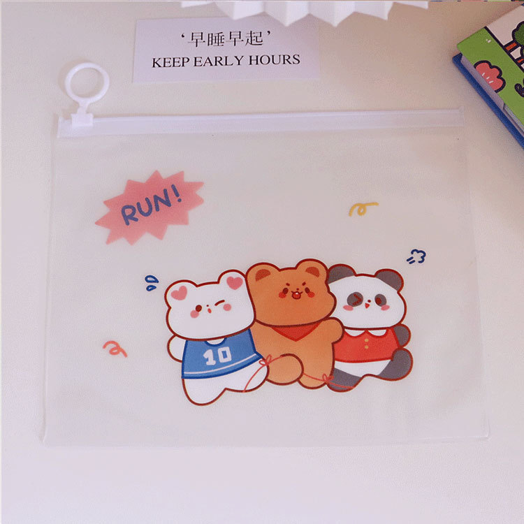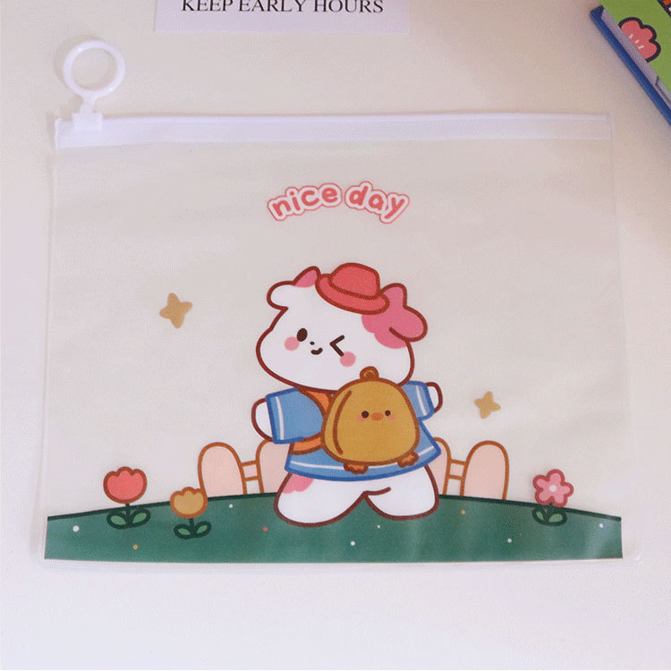 한국 귀여운 만화 폴더 투명 플라스틱 지퍼 가방 간단한 작은 신선한 학생 문구 보관 가방스토어 가기