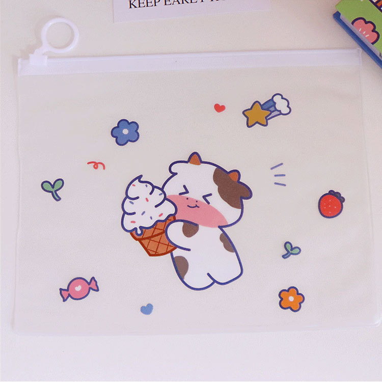 한국 귀여운 만화 폴더 투명 플라스틱 지퍼 가방 간단한 작은 신선한 학생 문구 보관 가방