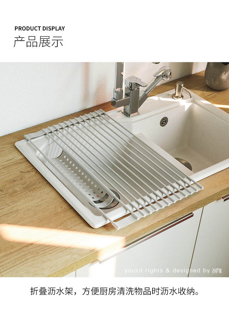 실리콘 배수 커튼 식기 세척대 과일 및 채소 건조대 접시 건조 바구니 접이식 배수대 주방 수납 선반스토어 가기