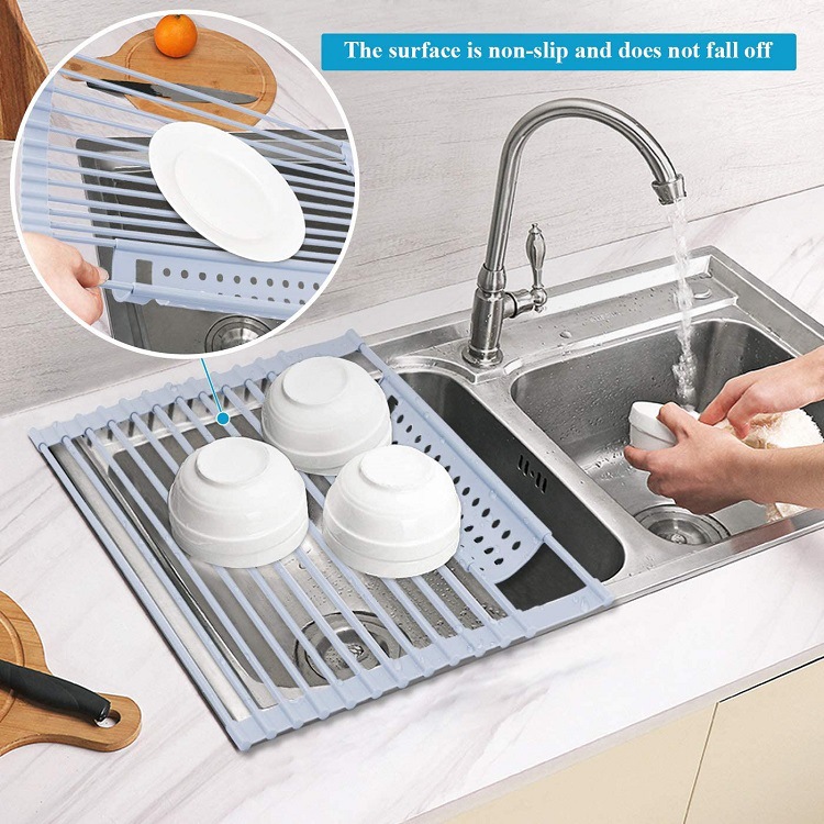 실리콘 배수 커튼 식기 세척대 과일 및 채소 건조대 접시 건조 바구니 접이식 배수대 주방 수납 선반