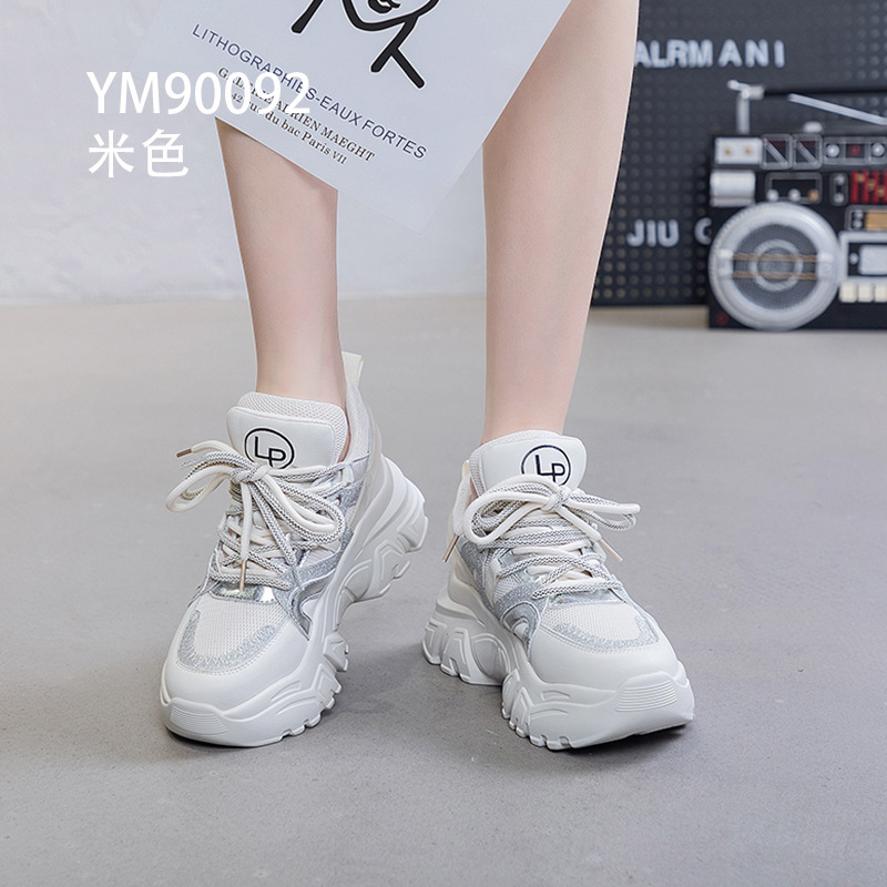 2023 새로운 인터넷 연예인 프라이팬 스트리트 토레 신발 정품 가죽 메쉬 스팽글 유행 통기성 높이 증가 두꺼운 밑창 여성 신발 트렌디스토어 가기
