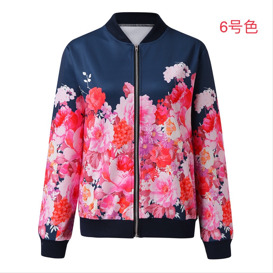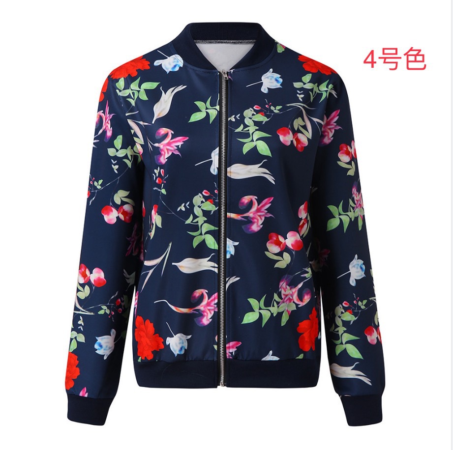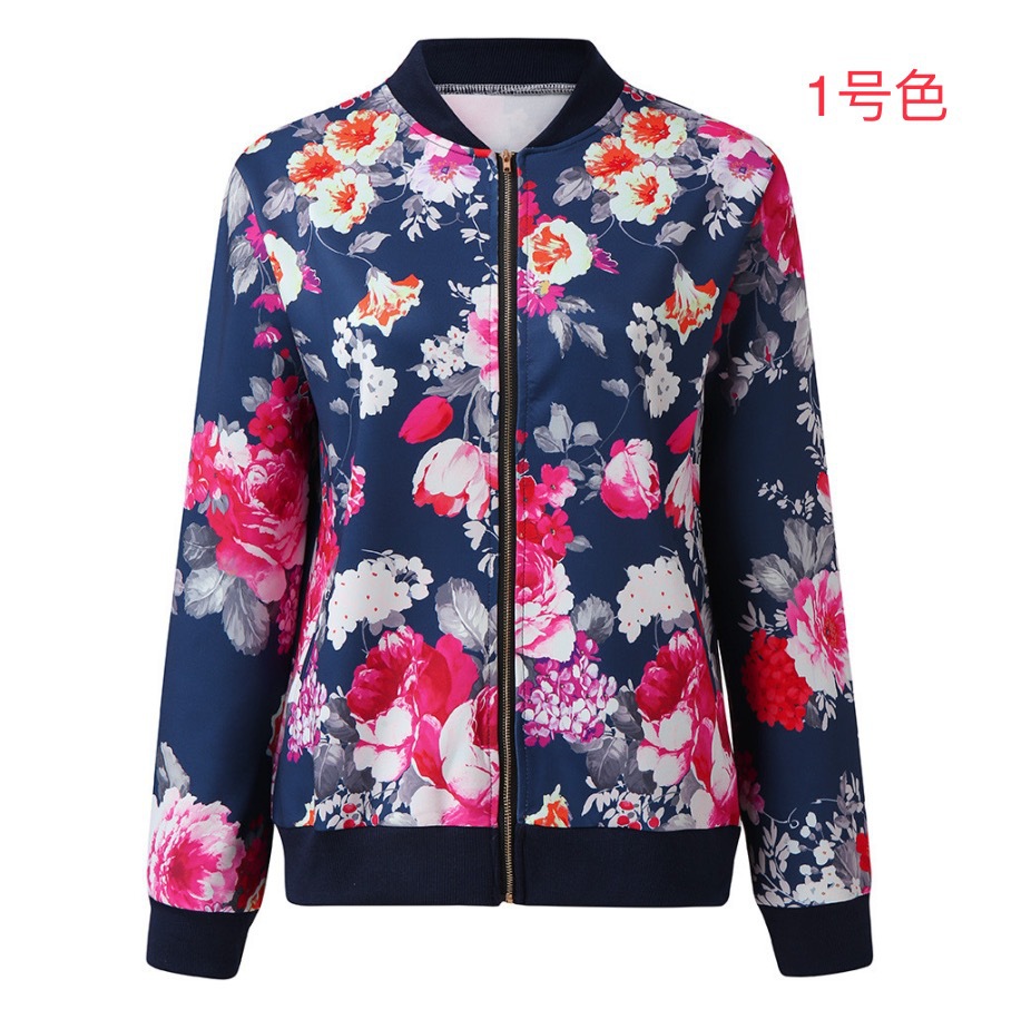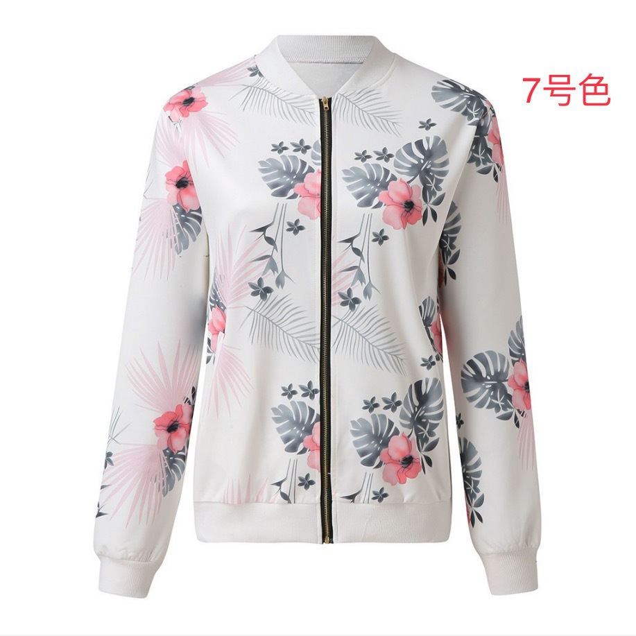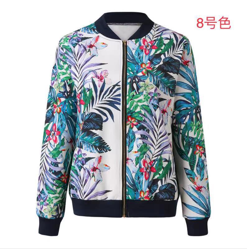 크로스 보더 여성의 2021 아마존 가을과 겨울 패션 여성 재킷 인쇄 크루넥 지퍼 긴 소매 재킷 8 색 재고스토어 가기